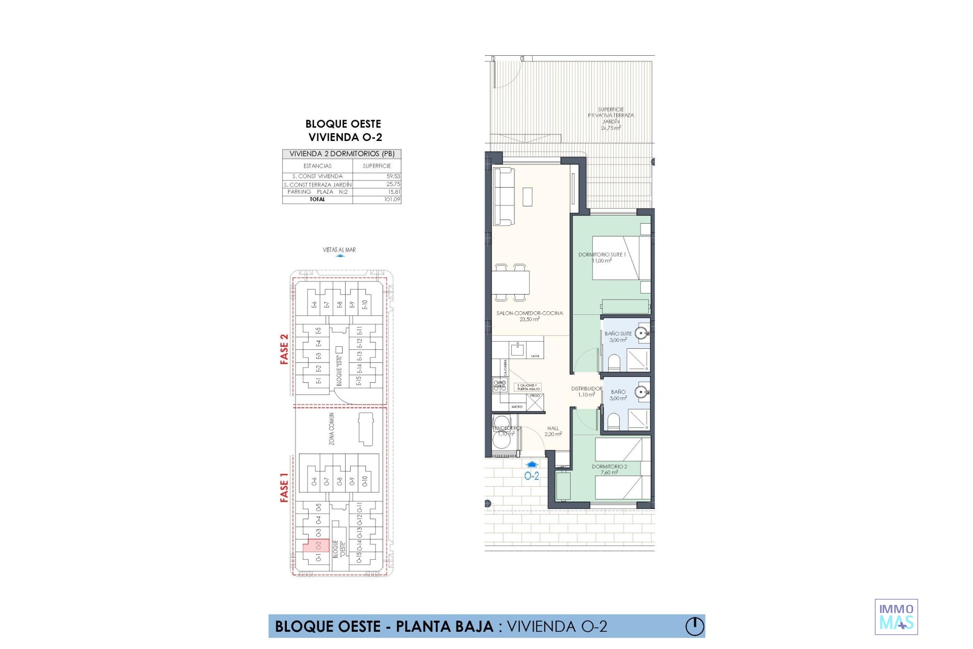 Modern wonen op een steenworp afstand van het strand van Las Higuericas in Torre de la Horadada Toplocatie vlakbij de Middellandse Zeekust Ervaar het beste van wonen aan de kust met dit prachtige nieuwe project op slechts 150 meter van het strand van Las Higuericas in Torre de la Horadada. Deze badplaats staat bekend om zijn gouden zand en kristalheldere water en biedt een perfecte mix van ontspanning en moderne voorzieningen. Of u nu op zoek bent naar een rustige retraite of een bruisende levensstijl, Torre de la Horadada biedt de ideale omgeving voor uw droomhuis. Doordacht ontworpen woningen Kies uit moderne begane grond bungalows met prive-tuinen of bovenste verdieping bungalows met ruime solariums. Elke 2-slaapkamer woning is ontworpen met hedendaagse esthetiek en functionaliteit in het achterhoofd, en biedt: Privé parkeerplaatsen. Grote terrassen om buiten te genieten. Hoogwaardige voorzieningen die het comfort en gemak verhogen. Uitzonderlijke voorzieningen Het project beschikt over een reeks gemeenschappelijke voorzieningen die ontworpen zijn om uw woonervaring te verbeteren: Aangelegde groene ruimtes voor ontspanning. Een verfrissend gemeenschappelijk zwembad. Een paddlebaan voor sportliefhebbers. Handige lifttoegang vanuit de ondergrondse parkeergarage. Hoogwaardige voorzieningen voor modern comfort Elke woning is uitgerust met hoogwaardige afwerkingen, waaronder: Beveiligde toegangsdeuren voor uw gemoedsrust. Ramen met thermische onderbreking voor verbeterde geluidsisolatie. Ingerichte kasten met LED-verlichting. Vooraf geïnstalleerde airco voor comfort het hele jaar door. Elegant sanitair, spiegels en glazen doucheschermen. Elektrische rolluiken en buitenverlichting voor extra gemak. Aerothermische boilers voor energie-efficiëntie. Gemakkelijke toegang tot lokale attracties De toplocatie van dit project garandeert gemakkelijke toegang tot een verscheidenheid aan attracties en voorzieningen: Las Higuericas Beach: Op slechts 150 meter afstand voor moeiteloze stranddagen. Luchthaven Murcia: 30 km (ongeveer 30 minuten met de auto). Lo Romero Golfbaan: 10 km, ideaal voor golfliefhebbers. Winkelcentrum Dos Mares: 11 km, biedt winkels, eetgelegenheden en entertainment. Haven van San Pedro del Pinatar: 8 km, perfect om te genieten van activiteiten aan het water. Uw droomhuis wacht in Torre de la Horadada Omarm de unieke levensstijl van Torre de la Horadada, waar modern design en mediterrane charme elkaar ontmoeten. Mis uw kans niet om een huis te bezitten in deze exclusieve gemeenschap. Neem vandaag nog contact met ons op voor meer informatie of plan een bezichtiging!