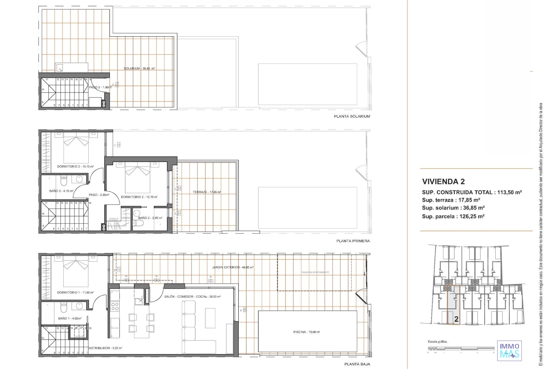 Moderne geschakelde villa's met privézwembad vlakbij de zee in Santiago de la Ribera Gelegen in de wijk San Blas in Santiago de la Ribera, Murcia, een van de meest aantrekkelijke gebieden van de Mar Menor. Dit project bestaat uit 12 villa's met 3 slaapkamers en 2/3 badkamers, inclusief privézwembad, terras en solarium met zomerkeuken in geselecteerde woningen. De villa's hebben een elegante en functionele inrichting, volledig uitgeruste keukens met alle apparatuur en zijn bovendien voorzien van pre-installatie voor airconditioning. Dit project biedt een unieke kans om te genieten van design, comfort en stijl op slechts enkele minuten van de zee. Exclusief nieuwbouwproject op slechts 1 km van het strand Ontdek dit limited edition project van geschakelde villa's in Santiago de la Ribera, een charmant kustplaatsje aan de kust van Murcia, bekend om zijn ontspannen levensstijl, schone stranden en het uitstekende klimaat het hele jaar door. Deze nieuwe woningen liggen op slechts 1 km van de kust van de Mar Menor en bieden de perfecte combinatie van privacy, comfort en nabijheid van essentiële voorzieningen en recreatiemogelijkheden. Eigentijds ontwerp met functionele indeling Elke villa is zorgvuldig verdeeld over twee verdiepingen en sommige woningen hebben een dakterras, wat veel ruimte biedt voor modern wonen. De woningen beschikken over: 3 ruime slaapkamers, waarvan één op de begane grond 2 of 3 complete badkamers. Privétuin en zwembad. Terras op de eerste verdieping en sommige woningen hebben een solarium op het dak, ideaal om te zonnen of gasten te ontvangen. Privé parkeerplaats op het terrein. Bovendien zijn twee van de woningen voorzien van zonnepanelen om energie te besparen. Hoogwaardige afwerking en voorzieningen De woningen zijn met oog voor detail en volgens moderne normen gebouwd en zijn voorzien van: Beveiligde toegangsdeur Gemotoriseerde aluminium rolluiken Ingerichte keuken met inbouwapparatuur Badkamermeubels met spiegel en verlichting Op maat gemaakte douchebak in porselein met douchewanden Voorbereiding voor airconditioning via leidingen Deze woningen zijn ontworpen om het hele jaar door van te genieten, als hoofdverblijf, tweede woning of als investering voor vakantieverhuur. Beproevde locatie aan de Costa Cálida Santiago de la Ribera biedt een mediterrane en dynamische levensstijl met alles binnen handbereik: Strand (Mar Menor) – 1 km Winkelcentrum La Ribera – 2 km Roda Golf – 5 km Luchthaven San Javier – 6 km Jachthaven van Lo Pagán – 4 km Winkelcentrum Dos Mares – 3 km Uitstekende verbinding via de snelweg naar Murcia (40 km) en Cartagena (30 km) Met zijn rijke lokale cultuur, wekelijkse markten, boulevards en mogelijkheden voor watersport is Santiago de la Ribera een ideale plek om te genieten van het beste van de Costa Cálida. Maak uw droom van een leven aan de kust waar Mis deze unieke kans niet om een elegante nieuwbouwwoning te kopen in een van de meest gewilde gebieden aan de kust van Murcia. Neem nu contact met ons op voor meer informatie of om een bezichtiging te regelen.