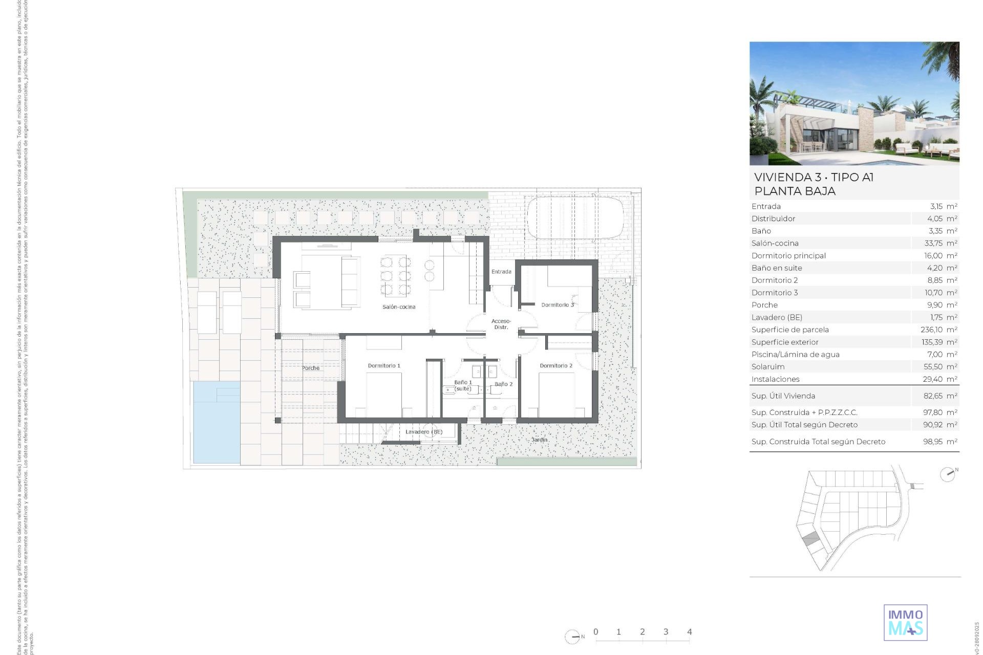 Moderne nieuwbouwwoningen met privézwembad in Valle del Este, Vera, Almería Exclusieve privéwoonwijk met 33 onafhankelijke villa's Ontdek een unieke collectie van 33 nieuwbouwwoningen in een beveiligde privéwoonwijk in Valle del Este, Vera, Almería. Deze wijk ligt naast het prestigieuze Valle del Este Resort en de golfbaan Valle del Este en biedt de perfecte mix van natuur, rust en resortleven. Elke villa is ontworpen op één niveau en biedt maximaal comfort en functioneel wonen, ideaal voor zowel permanente bewoning als vakantie-investering. Eigentijds ontwerp op één niveau met solarium en zwembad Deze prachtig ontworpen woningen beschikken over 3 slaapkamers en 2 badkamers, een ruime open woonkamer en een naadloze verbinding tussen binnen en buiten. Elke villa heeft een eigen solarium, een privézwembad en een onafhankelijk perceel met aangelegde tuinen. Belangrijkste kenmerken: Volledig ingerichte keuken met apparatuur Moderne badkamers met wastafels en doucheschermen Privézwembad met nachtverlichting en zoutwatersysteem Privé-solarium en pergola Gemotoriseerde poort en privéparkeerplaats Voorbereiding voor airconditioning Toplocatie vlakbij het strand, golfbanen en voorzieningen Valle del Este is een van de meest gewilde woonwijken in de Levante Almeriense, bekend om zijn rustige omgeving, hoogwaardige golfvoorzieningen, natuurlijke landschappen en uitstekende mediterrane klimaat. Vera staat internationaal bekend om zijn natuurlijke stranden en kristalheldere water, met meer dan 6 km kustlijn, waaronder Las Marinas Bolaga, Puerto Rey, El Playazo en Quitapellejos. Ook in de buurt liggen topkustplaatsen als Mojácar en Garrucha, beroemd om hun charmante stranden, jachthavens, restaurants en recreatiemogelijkheden. Afstanden tot belangrijke bezienswaardigheden Valle del Este Golf 0,3 km Stranden van Vera 7 km Mojácar en Garrucha minder dan 10 km Luchthaven Almería 75 km (45 minuten) Luchthaven Corvera Murcia 140 km (1 uur en 30 minuten) Luchthaven Alicante 200 km (2 uur) Het gebied is perfect verbonden via de mediterrane snelweg A7, waardoor u snel toegang heeft tot diensten, winkels, strandclubs, jachthavens, sportfaciliteiten en culturele bezienswaardigheden in de regio. Geniet van luxe mediterraan leven in Vera Ervaar de perfecte balans tussen modern design, privacy en resortlifestyle in een van de meest aantrekkelijke gebieden van Almería. Neem vandaag nog contact met ons op voor meer informatie, beschikbaarheid en bezichtigingsafspraken en verzeker uzelf van uw droomvilla in Valle del Este.