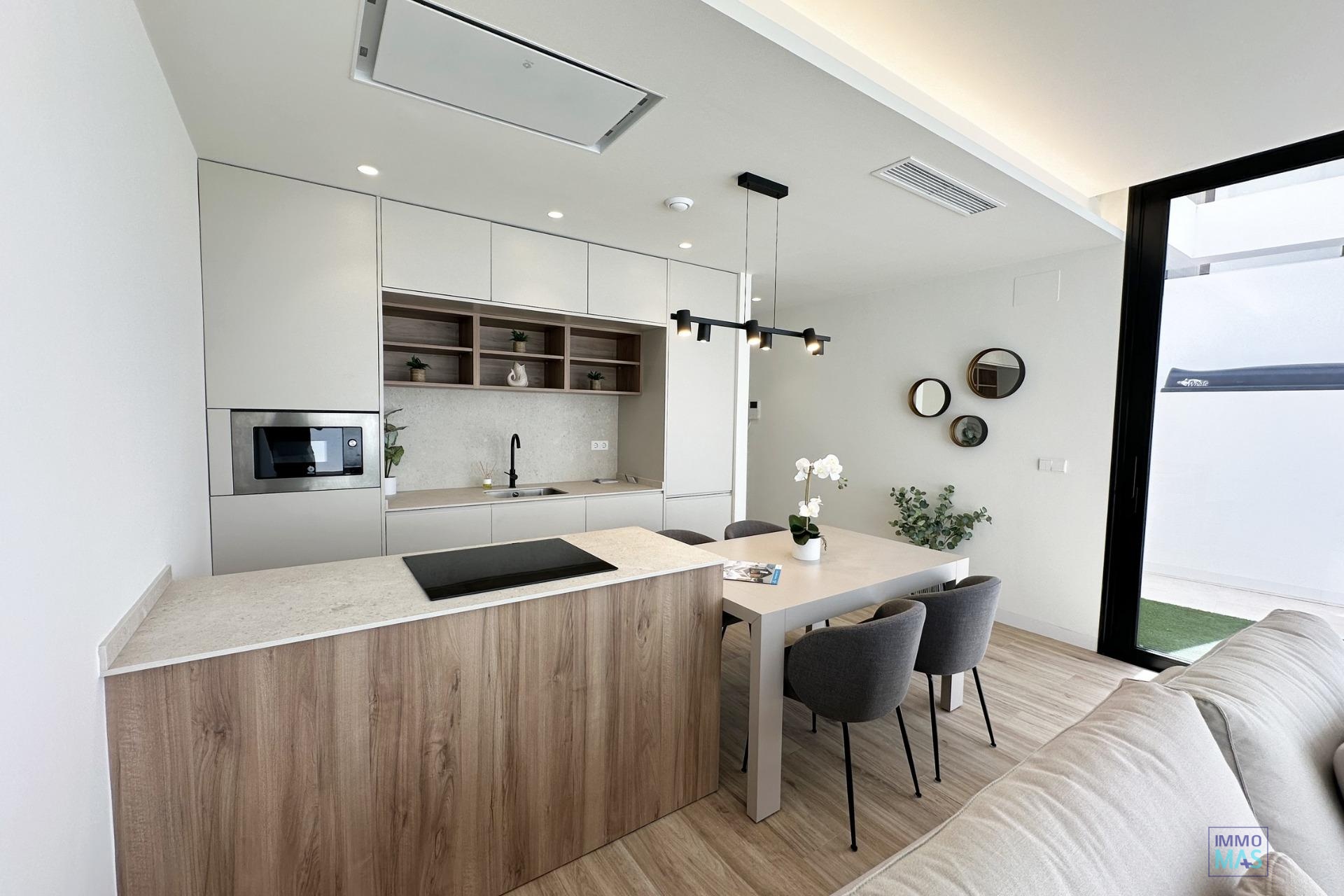 Exclusive New Build Villas 300 m from the Beach in Torre de la Horadada Luxury Coastal Living in a Prime Location Discover this exclusive new build villa project in Torre de la Horadada, one of the most sought after coastal towns in the south of Alicante. Located just 300 m from the Mediterranean Sea and within walking distance of shops, restaurants and daily services, these villas offer an exceptional opportunity to enjoy the Costa Blanca lifestyle. Torre de la Horadada is known for its relaxed atmosphere, beautiful promenade and fine sandy beaches, making it ideal for both permanent living and holiday use. Last Key Ready Villa Fully Equipped This boutique development consists of only four independent villas, with the last unit available key ready and fully furnished. The villa is delivered complete with furniture, appliances and ducted air conditioning, allowing you to move in immediately and start enjoying your new home by the sea. Set on a private plot of approximately 207 m2, the villa offers around 130 m2 of built space distributed over ground floor, first floor and a private rooftop solarium. Modern Design with Private Pool and Solarium The villa features a contemporary design with open and bright spaces. Inside, you will find three spacious bedrooms and three bathrooms, a living dining area with an open plan kitchen, and direct access to the garden and private swimming pool. The rooftop solarium provides an ideal space to relax, sunbathe or enjoy open views, creating a perfect outdoor living area all year round. High Quality Specifications and Comfort The property is built to high standards and includes a reinforced entrance door, motorised shutters in the bedrooms, a private swimming pool, and a basic home automation system for electronic controls. Ducted air conditioning is fully installed, ensuring comfort in all seasons. A private parking space within the plot adds convenience and security. Torre de la Horadada and Surroundings Torre de la Horadada offers a charming coastal environment with a long seafront promenade, marinas and a wide range of restaurants, bars and local shops. The nearby beaches of Torre de la Horadada and Mil Palmeras are among the best in the area, ideal for swimming, water sports, snorkelling and diving. The area is well connected and surrounded by golf courses, shopping centres and leisure options. Distances to Main Points of Interest Beach: 0.3 km Plaza Nueva shopping area: 0.2 km Lo Romero Golf: 7 km Marina of Torre de la Horadada: 1.5 km Murcia Corvera Airport: 45 km Alicante Airport: 50 km Your New Home by the Mediterranean Awaits This key ready villa in Torre de la Horadada is a unique opportunity to own a modern home just steps from the beach. Contact us today to arrange a viewing and secure this exceptional new build villa on the Costa Blanca.