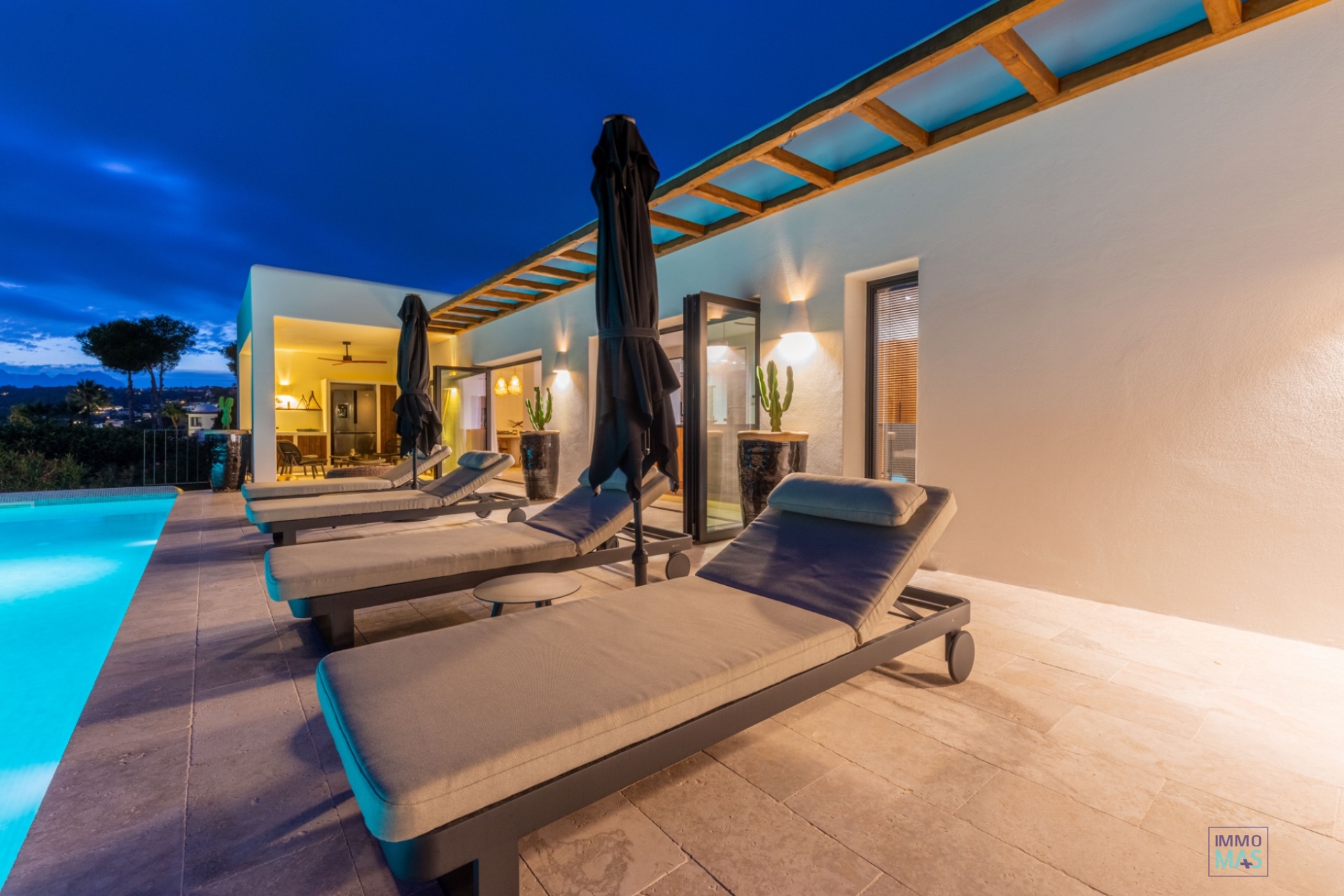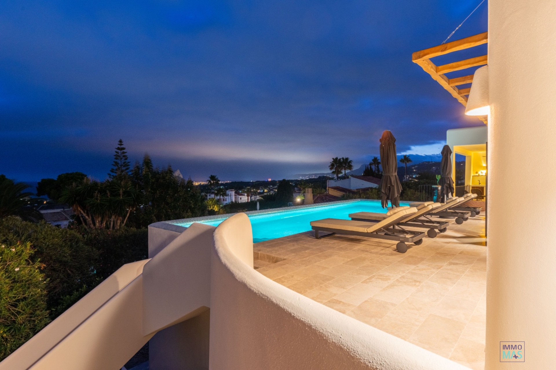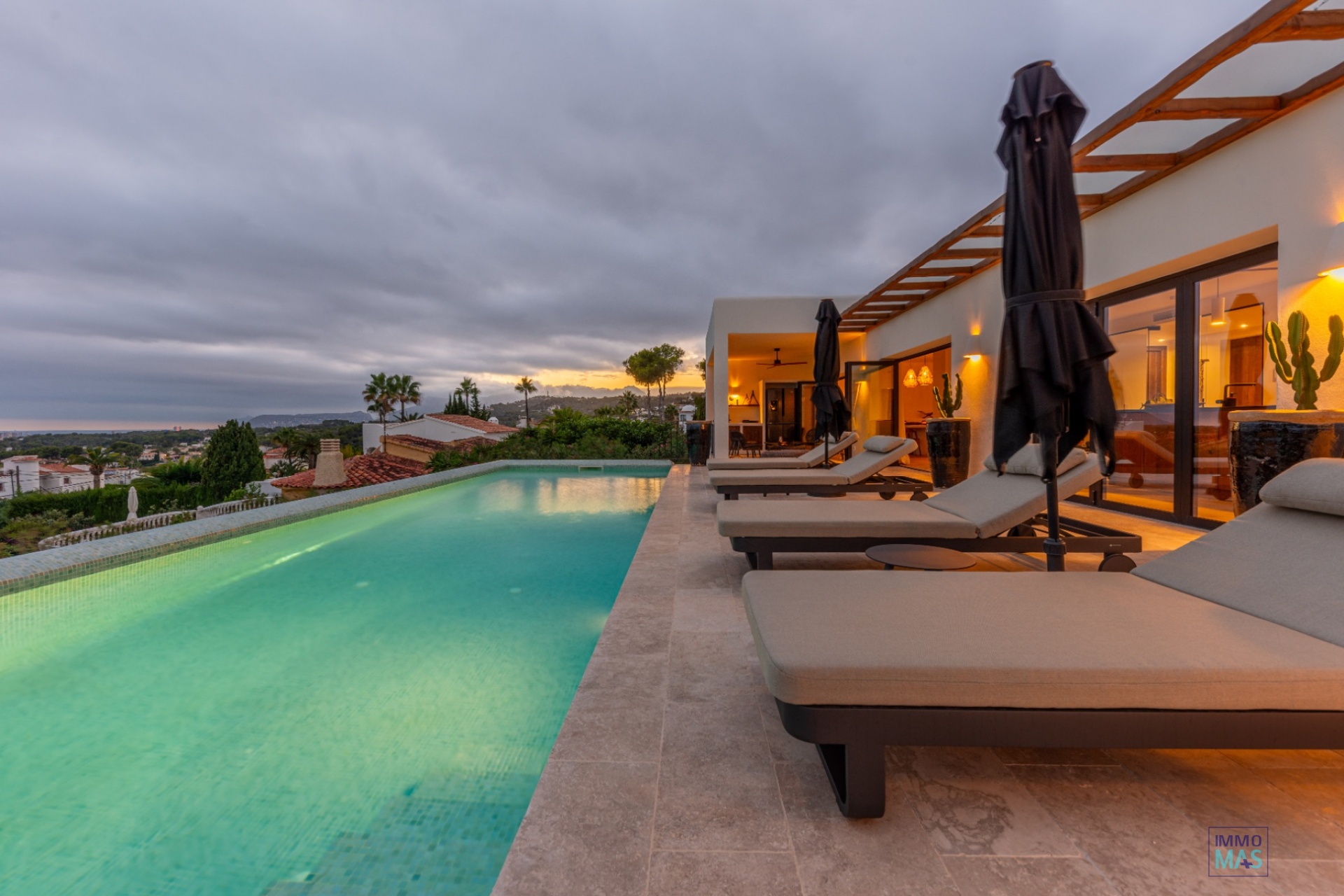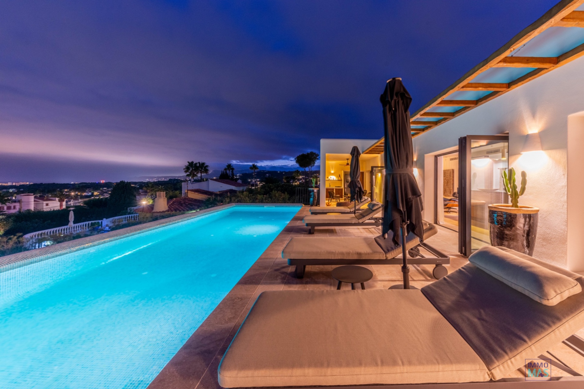 Are you looking for an exclusive villa with breathtaking sea views in the heart of the Costa Blanca North? This unique high-end designer villa in the prestigious residential area of San Jaime in Benissa-Moraira combines Mediterranean charm with modern luxury, sustainability and a prime location overlooking the Mediterranean Sea and the iconic Peñón de Ifach.