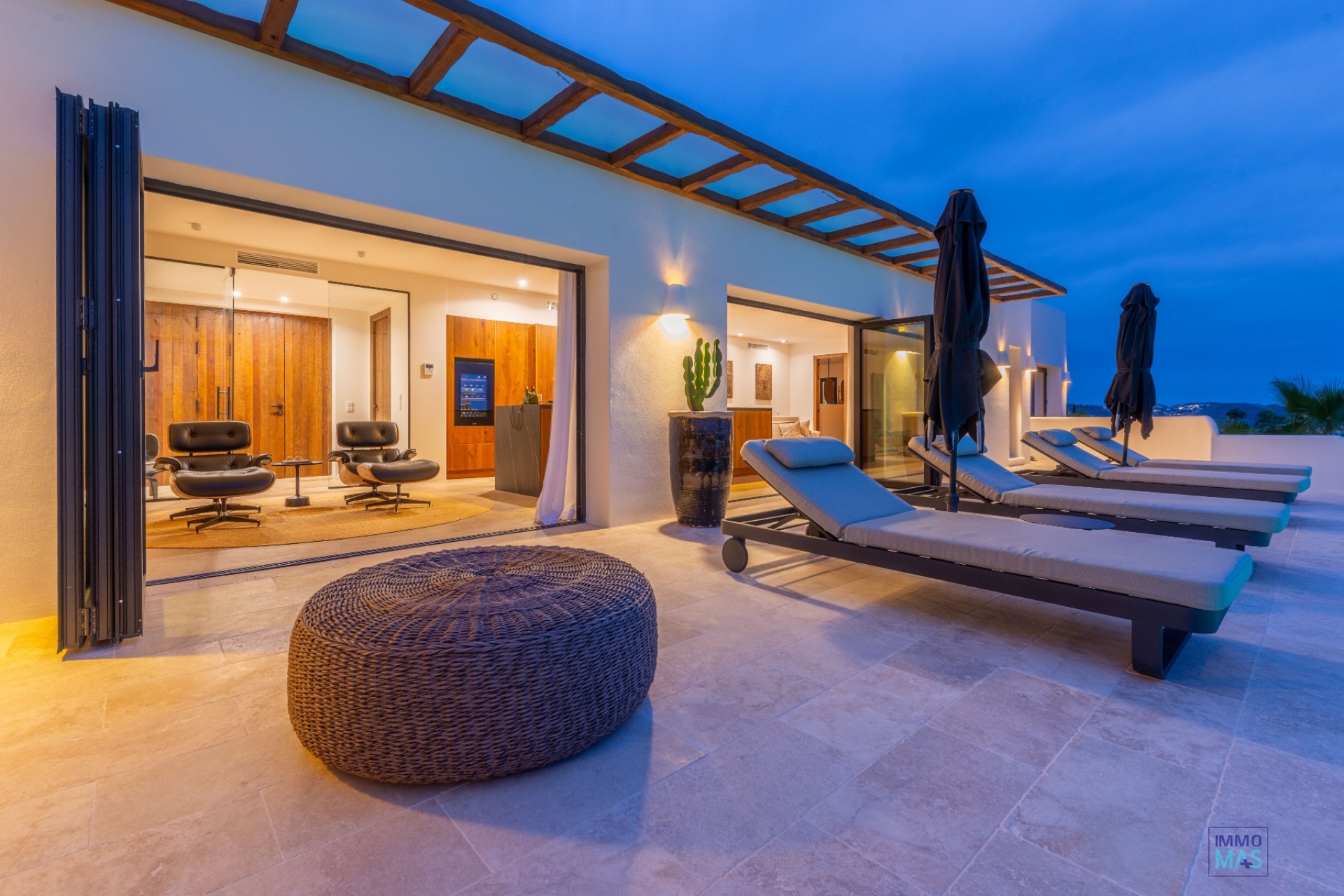 The large sliding windows in Reynaers Aluminium provide a perfect indoor-outdoor experience and open onto the south-facing terrace with private swimming pool, sun loungers and breathtaking sea views – a true paradise for bon vivants.