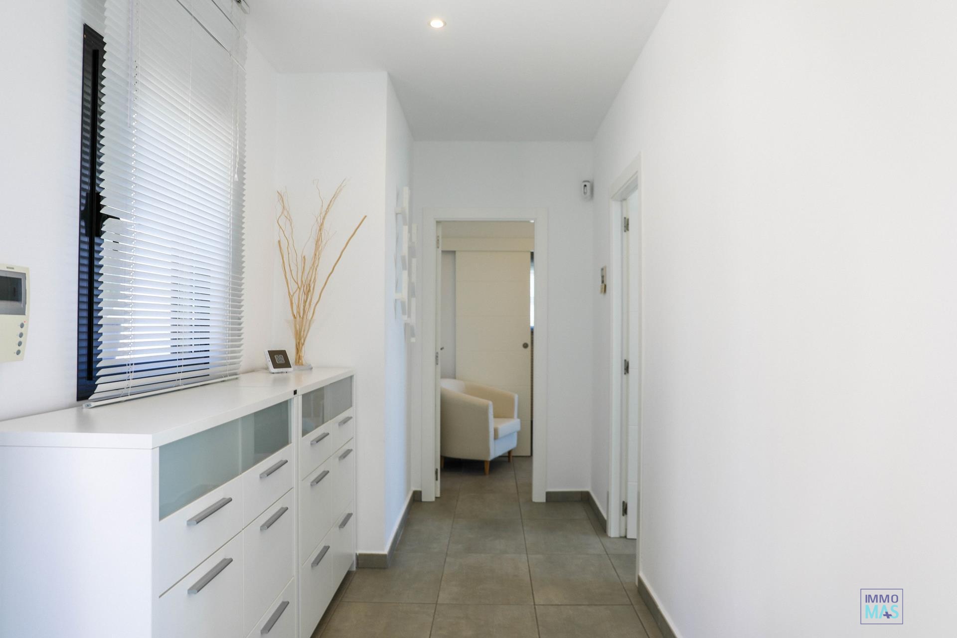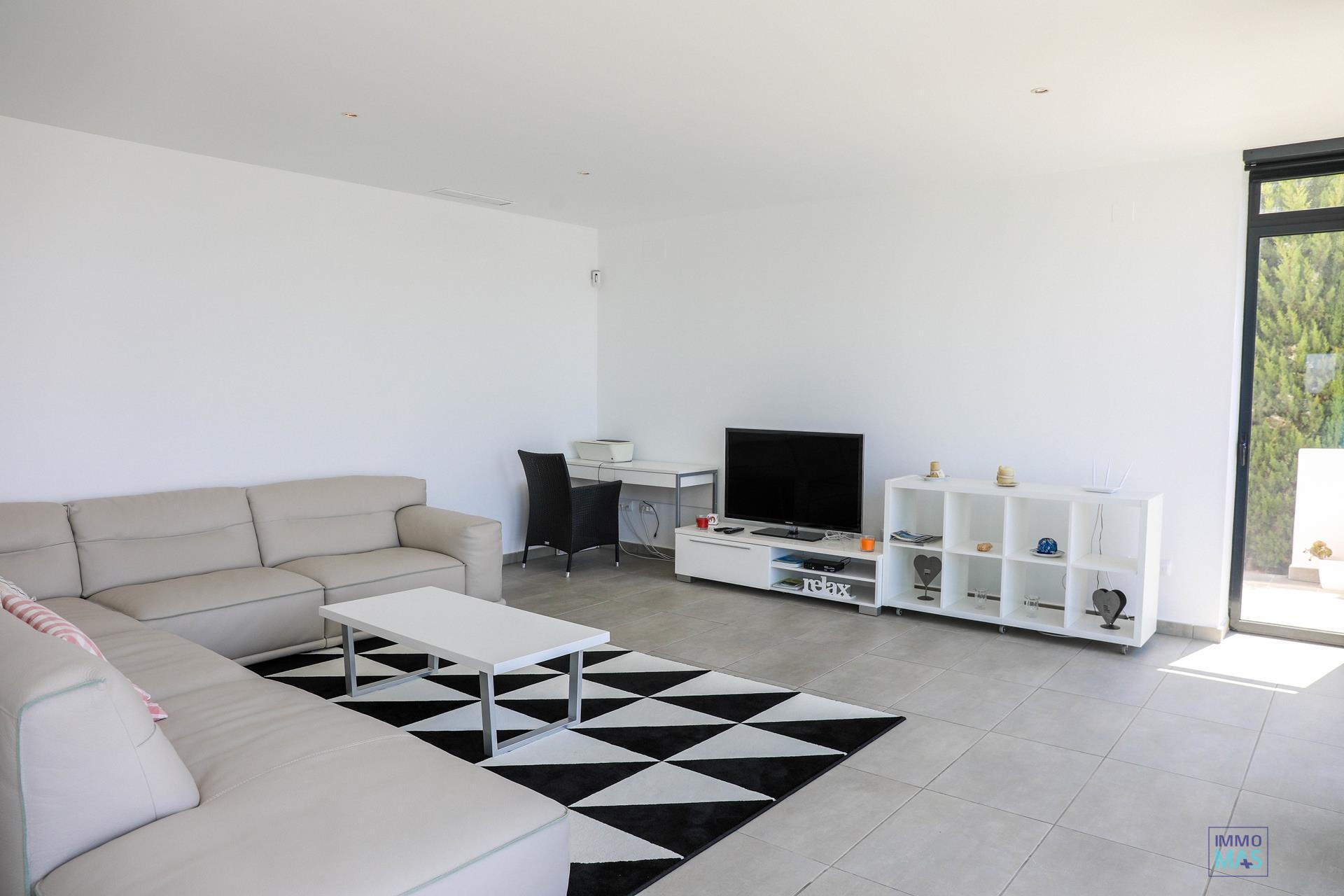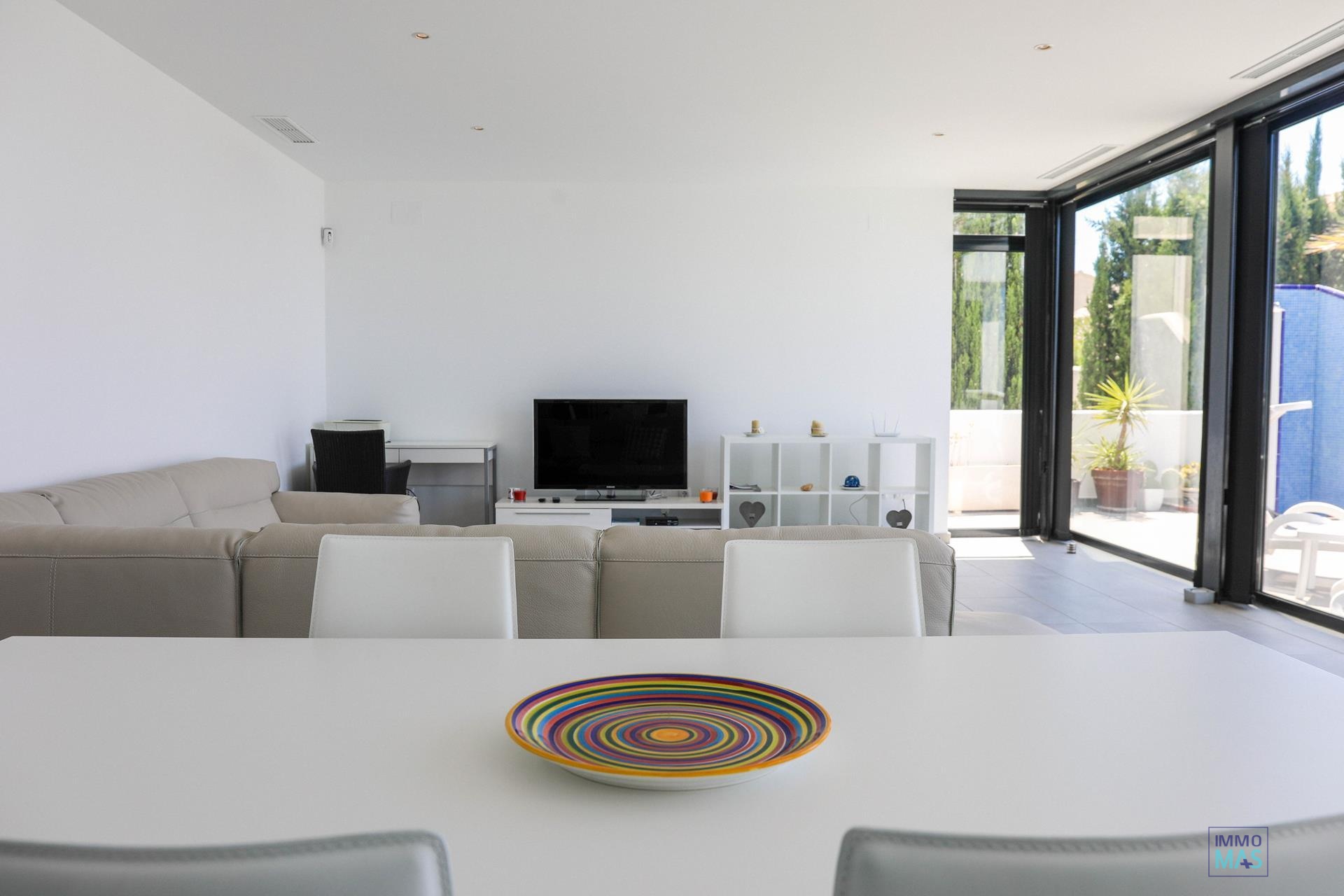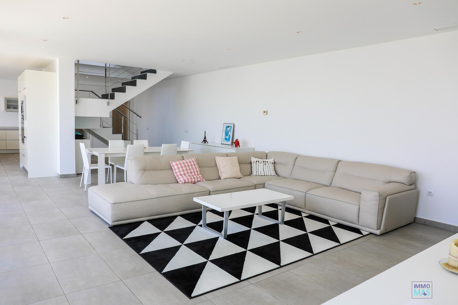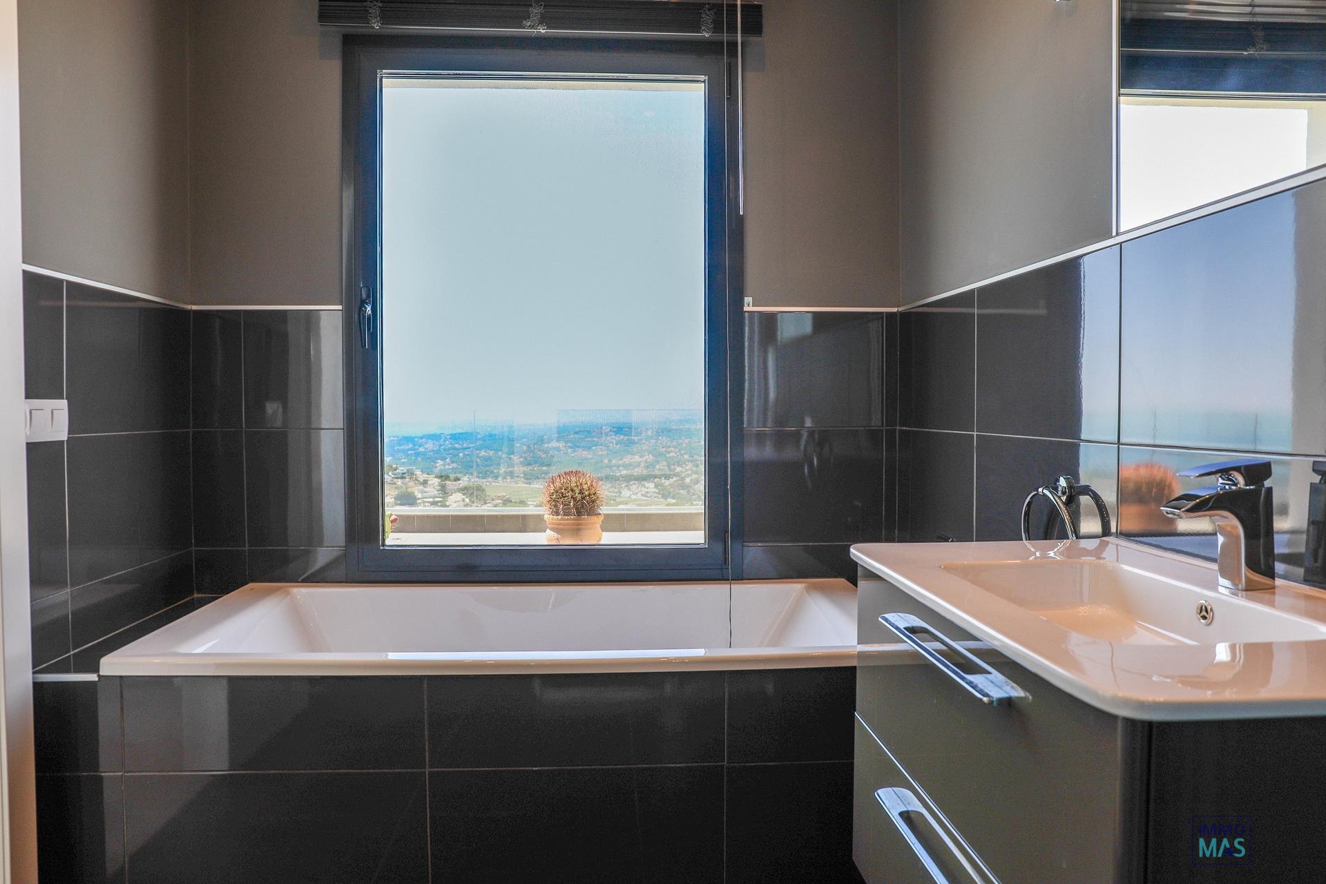 Modern style villa with stunning sea views in the Kalmias residential area of the Cumbre del Sol urbanization located between Jávea and Moraira. It has a total constructed area of 430 m2 (200 m2 of main house, 90 m2 of guest apartment and 140 m2 of terraces), all built on a plot of 1025 m2. In total we have 5 double bedrooms all with their private bathroom. Likewise, the villa is equipped with underfloor heating and air conditioning throughout the house. The villa is built on several levels. We access with the car through a wide and comfortable access ramp, accessing the parking area with a covered area and with access to the villa through the upper floor, on the upper floor we have three double bedrooms each with its own bathroom. bathroom and direct access to the outdoor terrace with spectacular views of the sea and the mountains. Through an internal staircase we go down to the main floor of the villa where we have the living room and kitchen in open concept as well as the laundry room and a courtesy toilet, both from the kitchen area and the living room we can access the terrace exterior with private pool. From the terrace we can access the barbecue area that is located on one side of the villa. From this terrace we can skirt the pool and reach the guest apartment which is also accessible via an external staircase directly from the parking area of the villa. The guest apartment enjoys very nice views from the outside terrace and the living room. Through an internal staircase we go up half a floor to access the two double bedrooms and the two bathrooms. The Kalmias residential area is a development of villas consisting of 189 plots of 750 to 1200M2 located in the cumbre del sol urbanization in Benitachell (Alicante). Almost all the plots enjoy beautiful views of the sea, the Moraira valley with Calpe in the background and the mountains with the Sierra de Bernia in the background, the orientation of the plots can be South and Southwest. Residencial Kalmias is located in the Cumbre del sol urbanization at the south entrance bordering the Jazmines y Lirios residential area. Distances to services: From 1 to 3 km you will find the Dreamsea Mediterranean camp with a bar and restaurant and access to Morach beach, the cala de los tiestos and Cala Llebeig, the Lady Elisabeth international school, the Mercadona supermarket and the equestrian. From 4 to 5 km; the Adelfas shopping center with the Pepe la sal supermarket, hairdresser, maintenance and rental services agency, cafeteria bar, la cumbre restaurant, pharmacy, sports center with paddle tennis, tennis, bar, Mas y Mas supermarket and the center urban Benitachell From 6 to 7 km; the urban center and the beach of Portet de Moraira and the golf course of Jávea. 12 km away is the sandy beach of Jávea