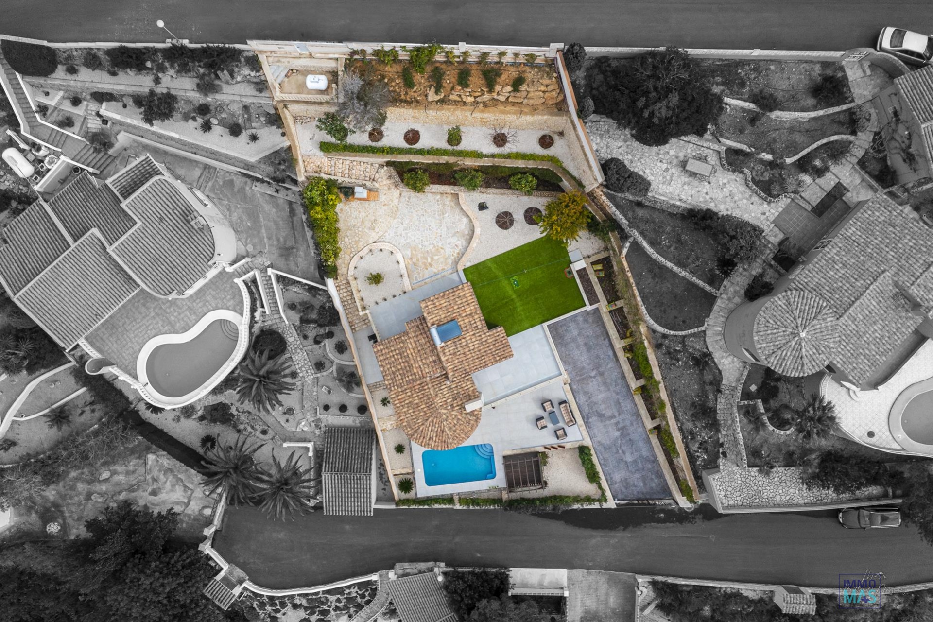 Beautiful fully refurbished villa located in the residential area Encinas in the Cumbre del Sol urbanization in the municipality of Benitachell between Jávea and Moraira. The villa is situated in a privileged location one minute drive from the Adelfas shopping centre (Pepe la Sal supermarket, hairdresser, restaurants, etc.) and four minutes from the Lady Elisabeth International School. Being situated in a cul-de-sac it has absolutely no traffic whatsoever making it an ideally safe place for children as well as off site for the curious. This villa is a must see as photos do not reveal its full beauty. The villa has a TV room which can be used as a bedroom or study room, making it a very well maintained 4 bedroom home of around 150m2 and around 150m2 of terraces and a plot of land of around 820m2. Below you will find some details of the house that are not revealed in the photos: - Underfloor heating on the ground floor and first floor, except for the stairs and bedroom 4. - Intelligent central heating and cooling of the upper floor with each bedroom having its own thermostat and temperature control (via phone and PC). - Each bedroom has access to the outside with floor to ceiling glass doors bringing in as much natural light as you desire. - All upper bedrooms have automatic smart control blinds (via phone or PC). - Full intelligent camera control of the outside of the house (via phone or PC) - All exterior lights and pool light are smart controlled (via phone or PC) - Garage door and driveway gate are also intelligently controlled (via phone and PC) - Pool heater, and LED light. - Water, heating boiler and kitchen hob are gas fired and a large tank is installed at the furthest point of the lot making maintenance of the house very cost effective. - Extra large garage with lots of storage shelves. - All cabinets are custom made with organizers, drawers and shelves. - Dining room fits a setting of 12 chairs with ease. - All windows are double glazed aluminium with tilt and turn system. - Water purification system with reverse osmosis filtration. Landscaping: This property is meticulously manicured from front to back and side to side. The upper terrace is surrounded by vegetation and natural stone retaining walls made with the famous hand chiselling, built by local craftsmen. Each terrace is filled with an array of well established fruit trees (peach, orange, mandarin, lime, lemon, jub jub, pomegranate, loquat, apricot and some new ones such as persimmon and avocado) or jasmine and/or roses and mimosas. The lower terrace has a swimming pool and a pergola with access to the driveway. The pergola is wrapped with wisteria and bougainvillea. On the street side a hedge of multi-coloured oleanders has been planted to create privacy all year round and beauty during the summer flowering season. The entire plot is cared for with an intelligent automatic irrigation system that regulates its watering according to weather conditions and forecasts and is also controlled by telephone or PC. Discover the exclusive Encinas Residential Area in Cumbre del Sol The Encinas Residential Area is a prestigious development of detached villas comprising 140 plots of between 750 m² and 1200 m², located in the exclusive Cumbre del Sol residential development in Benitachell (Alicante). Dream Views and Prime Orientation Most of the plots have impressive views of the sea, Cape Nao and even, on clear days, the magical island of Ibiza on the horizon. The orientation of the plots varies between east, southeast and south, which guarantees excellent natural light throughout the day and unforgettable sunsets. Location and surroundings The Encinas Residential Area is strategically located within the Cumbre del Sol residential development, bordering the prestigious Adelfas, Camelias and Dalias residential areas. This enclave offers a perfect combination of tranquillity and proximity to all the services necessary for a comfortable and sophisticated lifestyle. Distances to Key Services Between 1 and 3 km: Dreamsea Mediterranean Camp with bar and restaurantAccess to beaches: Cala Moraig, Cala de los Tiestos and Cala LlebeigLady Elizabeth International SchoolEncinas Shopping Centre with:Pepe la Sal supermarketHairdresserMaintenance and rental services agencyBar-caféLa Cumbre restaurantChemistSports centre with padel and tennis courts and barMas y Mas supermarketBenitachell town centreRiding stables6 km away: Mercadona supermarketJávea golf course7 to 8 km away: Portet de Moraira town centre and beach10 km away: Arenal de Jávea beachYour New Life in Cumbre del Sol Starts Here If you are looking for an exclusive environment, with spectacular views, excellent orientation and all services at your fingertips, the Encinas Residential Area is the perfect place to build the house of your dreams or enjoy a luxury villa. Contact us today for more information and discover everything the Encinas Residential Area has to offer!