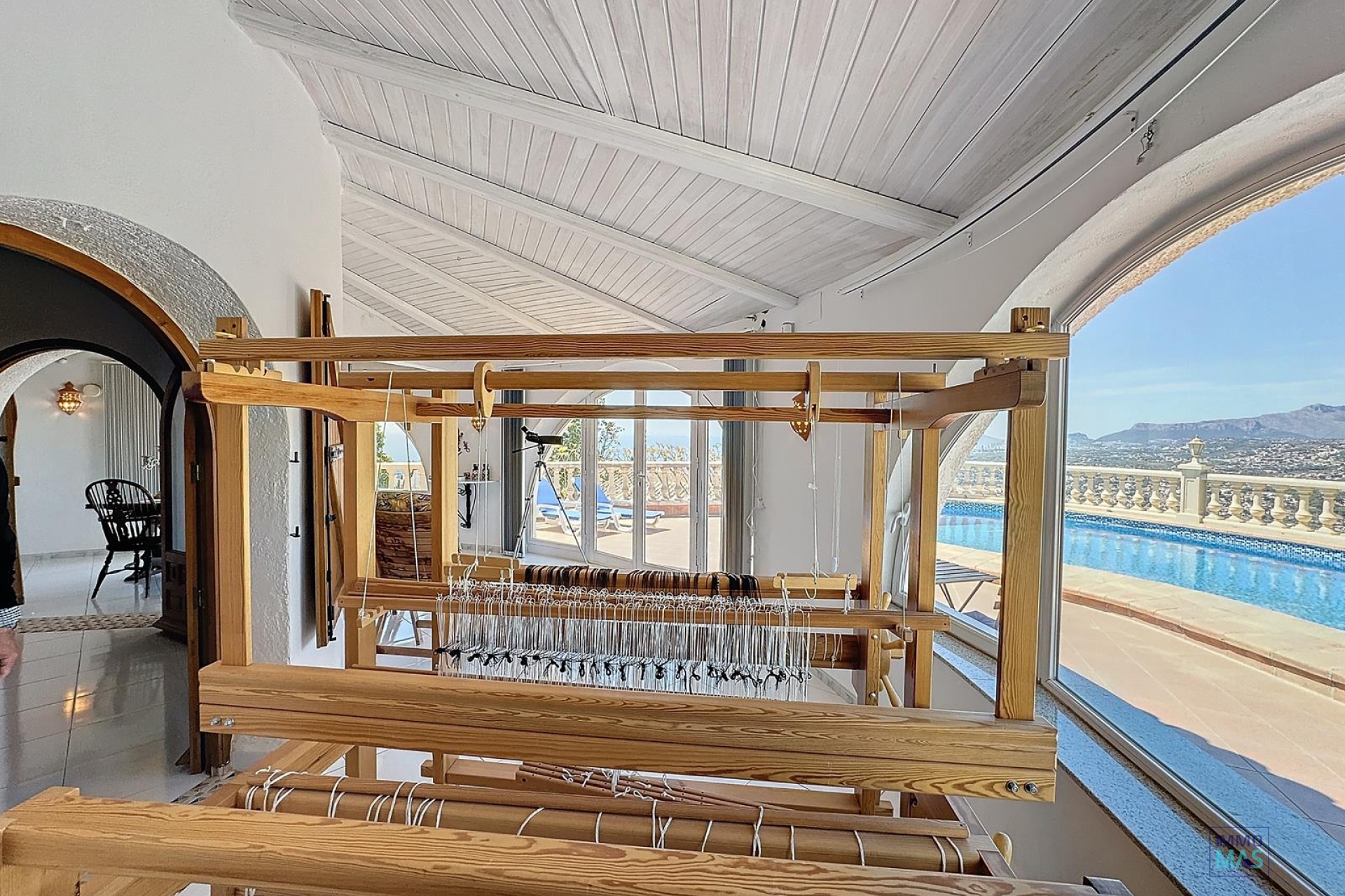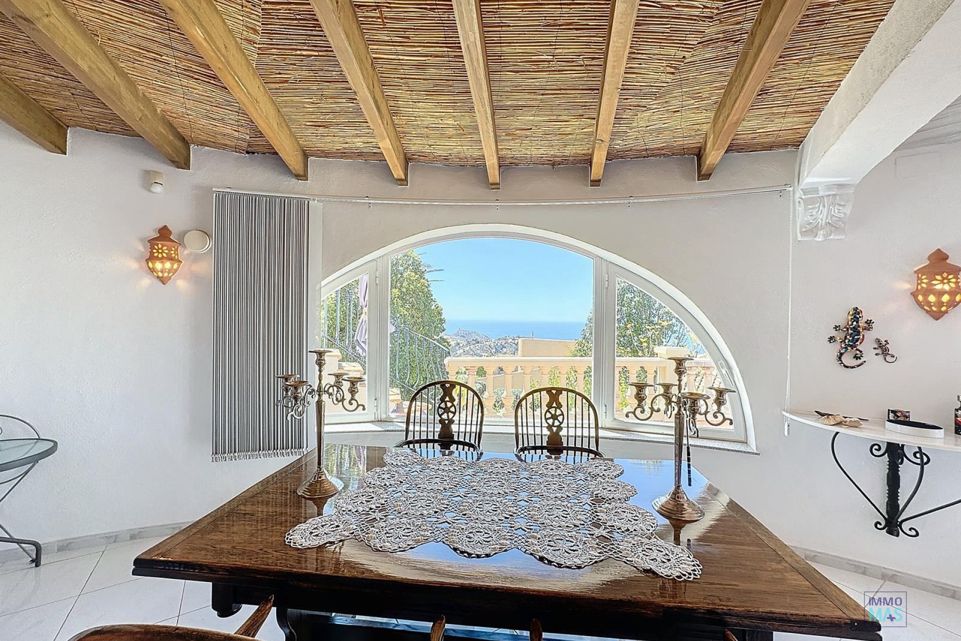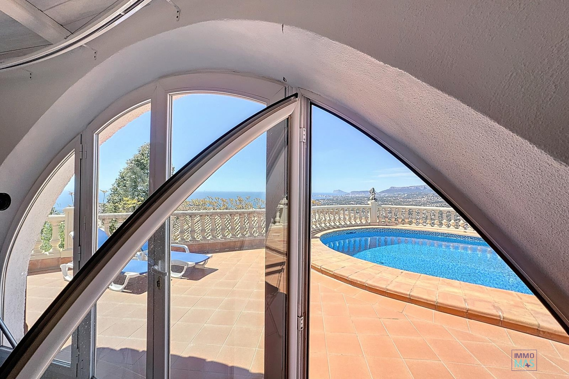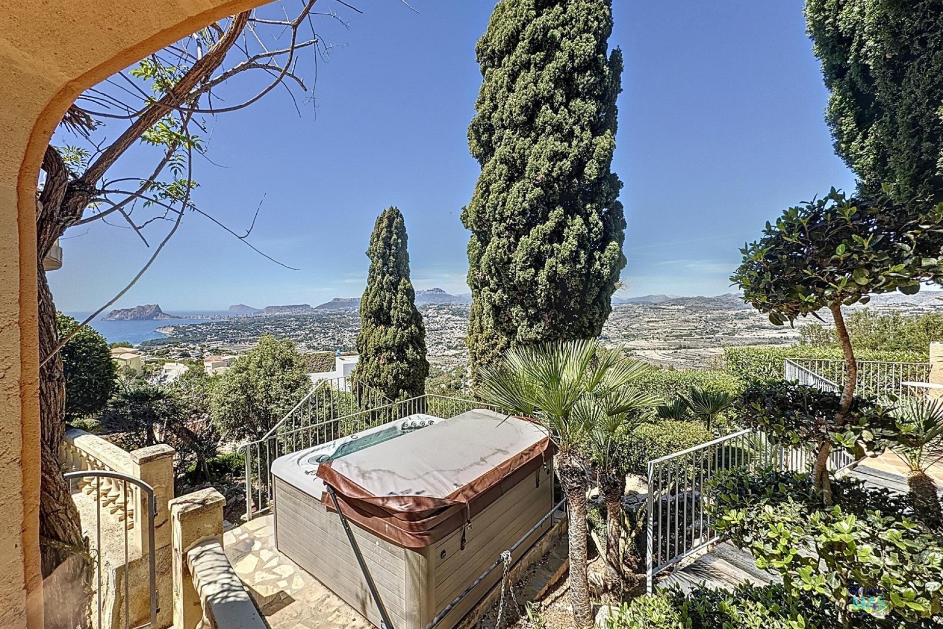 Spacious Villa with Spectacular Sea Views in Kalmias, Cumbre del Sol Welcome to the Cumbre del Sol residential development, where we present a real estate gem located in the prestigious residential area of Kalmias, between Jávea and Moraira, in the charming municipality of Benitachell. This spacious villa offers an unrivalled living experience with panoramic views of the Mediterranean Sea, highlighting the imposing Peñon de Ifach on the horizon. Property features: Built Area: 301 m² Plot: 1007 m² Distribution over several floors Spectacular sea views On the main floor, we find a spacious and bright living-dining room that opens onto a covered terrace, from which you can access the private pool terrace. The modern and fully equipped eat-in kitchen is perfect for enjoying pleasant culinary moments. On this floor there is also a guest toilet, a complete bathroom and a bedroom. The reading area on this floor leads us to the upper floor, where we find the majestic master bedroom, which acts as a private veranda with its own en-suite bathroom, offering unparalleled views of the sea. On the basement level, we discover an additional bathroom, several multi-functional rooms and an entertainment room equipped with an elegant bar and access to a charming wine cellar. This room also has access from the outside, where there is a terrace integrated into the garden, adorned with a beautiful pergola that provides pleasant shade during sunny days. Additional details: Garage: Space for one vehicle Garden: Several areas of enjoyment in a landscaped environment with great attention to detail. Private pool: Perfect for enjoying the Mediterranean climate. This villa represents a unique opportunity to live in one of the most sought after areas of the Costa Blanca, combining luxury, comfort and a privileged location. Don't miss this opportunity to acquire a property that offers the best of Mediterranean living. For more information and viewings, please do not hesitate to contact us, we look forward to seeing you at Cumbre del Sol!