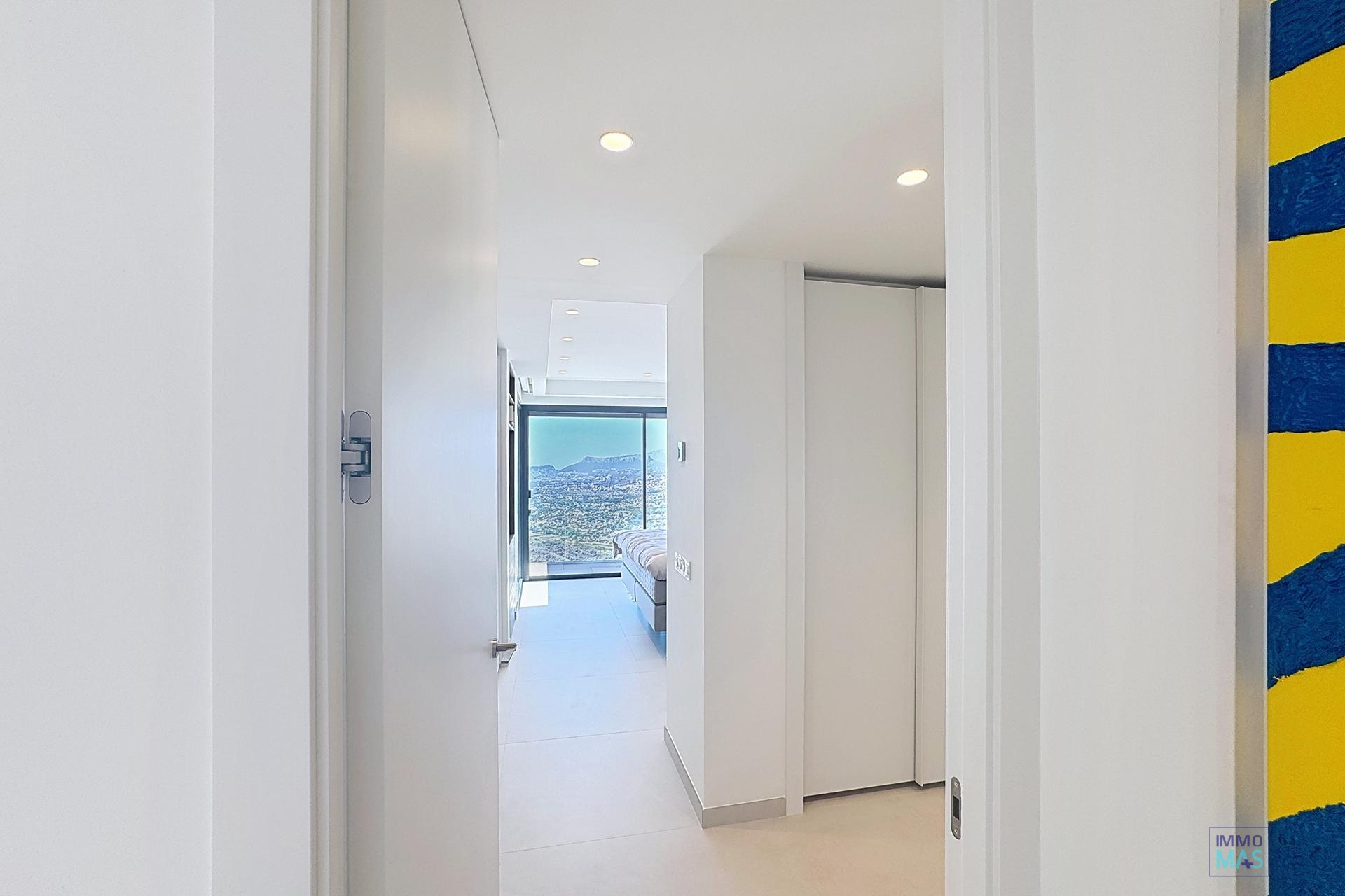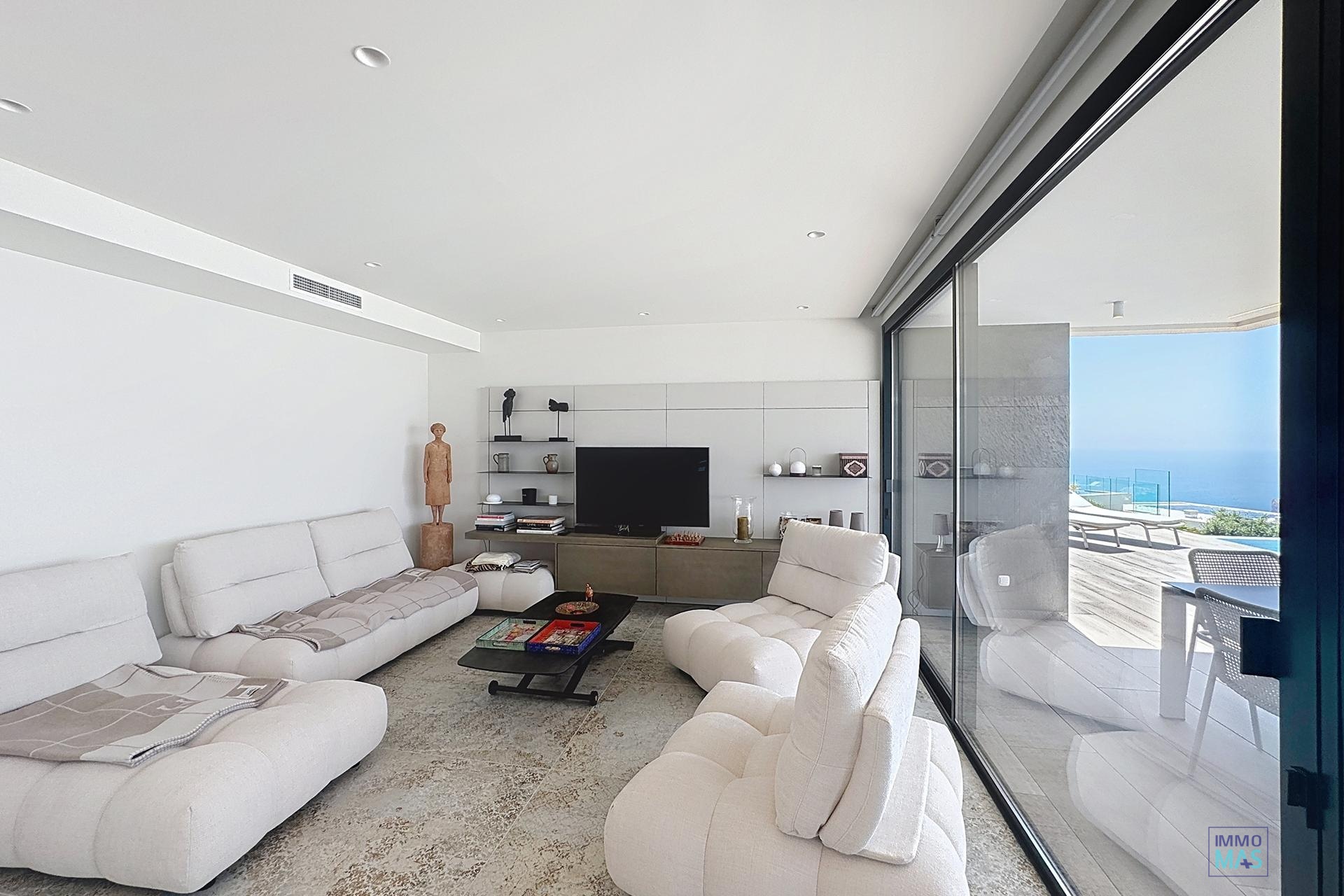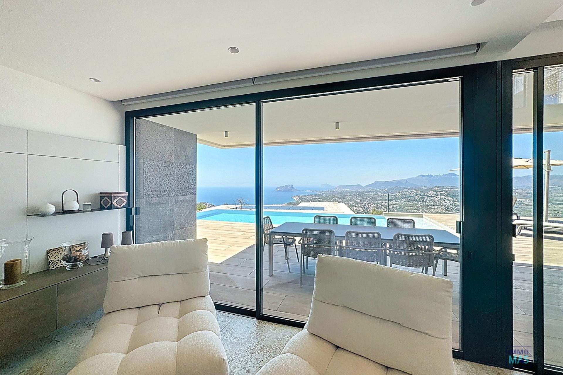 Luxury villa with panoramic sea views in the exclusive Jazmines area, Cumbre del SolContemporary design, maximum privacy and unparalleled viewsThis stunning luxury villa is located in one of the most privileged locations on the northern Costa Blanca: the Jazmines residential area, within the prestigious Cumbre del Sol development, between Moraira and Jávea, in the municipality of Benitachell. A unique enclave where cutting-edge architectural design blends with spectacular natural surroundings. The property stands out for its spectacular panoramic views of the Mediterranean Sea, stretching from the coast of Moraira and Benissa to the imposing Peñón de Ifach in Calpe, passing through the majestic Sierra de Bernia, all framed by the deep blue sea. An exclusive property distributed over three floorsWith a total built area of 544 m² on a 940 m² corner plot, this villa offers 5 double bedrooms, all with en-suite bathrooms, as well as spacious terraces, open-plan living areas and multiple outdoor spaces designed for year-round enjoyment. Entrance floor: functionality and stunning viewsThe property is accessed via an elegant entrance hall leading to the covered garage (46 m²), a utility room with laundry, and the main entrance to the property. From here, there is a spectacular open-plan area with a double-height living room and a huge panoramic window with sea views. On this same level, there are three double bedrooms, all with fitted wardrobes, en-suite bathrooms and access to terraces with views. The master bedroom also has an elegant dressing room and access to a private terrace. Ground floor: open spaces, light and connection to the outsideDescending a very comfortable internal staircase, we arrive at an area that impresses with its spaciousness and brightness. A double-height living-dining room features an 8-metre window that frames the sea as if it were a painting. The modern, fully equipped kitchen with a separate pantry opens onto the outdoor terrace. This floor also has a guest toilet. The kitchen and living room lead to the main terrace, where you will find the private swimming pool, the Mediterranean garden and a barbecue area with a summer kitchen, ideal for enjoying the climate and views all year round. Basement: guest apartment with independent accessAn external staircase leads to the guest apartment, comprising two double bedrooms, two full bathrooms, ducted air conditioning and a private covered terrace with spectacular views of the natural surroundings and the sea. Premium fittings and finishesEvery detail of this property has been carefully selected to ensure maximum comfort and efficiency: Underfloor heating and ducted air conditioningHome automation system, alarm and high-quality finishes15Kw photovoltaic installationSwimming pool with motorised coverOutdoor summer kitchen and landscaped areasThis villa not only offers a luxury experience, but also sustainability and energy efficiency. Would you like to live in a villa like this?If you are looking for an exclusive residence on the northern Costa Blanca, with privacy, contemporary design and unparalleled views, this property in the Jazmines area is for you. Contact us today and discover why so many people have chosen Cumbre del Sol to live or invest with complete peace of mind. Jazmines Residential Area – Cumbre del SolThe Jazmines area is one of the most exclusive within Cumbre del Sol, a well-established, peaceful environment that is highly valued by international buyers. It is located at the southern entrance of the development, which provides excellent connectivity to Moraira and Jávea. Its main attributes include: Privileged views of Ibiza, La Granadella, El Portet, the Peñón de Ifach and the Sierra de BerniaSpacious plots of between 800 m² and 1,200 m², with maximum privacyModern architectural design with high-end finishesUnrivalled natural surroundings, surrounded by sea and mountainsProximity to coves, high-quality services and leisure areasLiving in Jazmines is synonymous with well-being, exclusivity and quality of life. Here you are not just buying a house, you are buying a way of life.