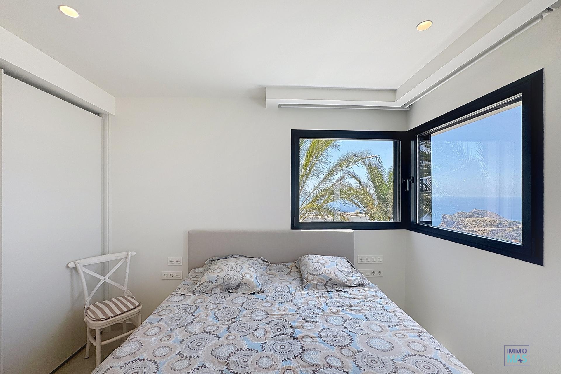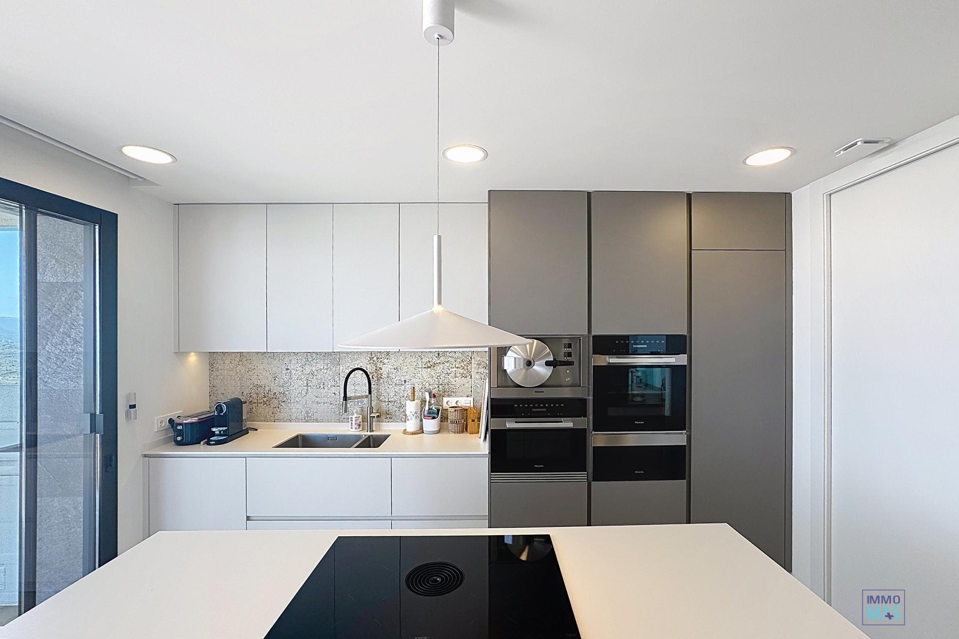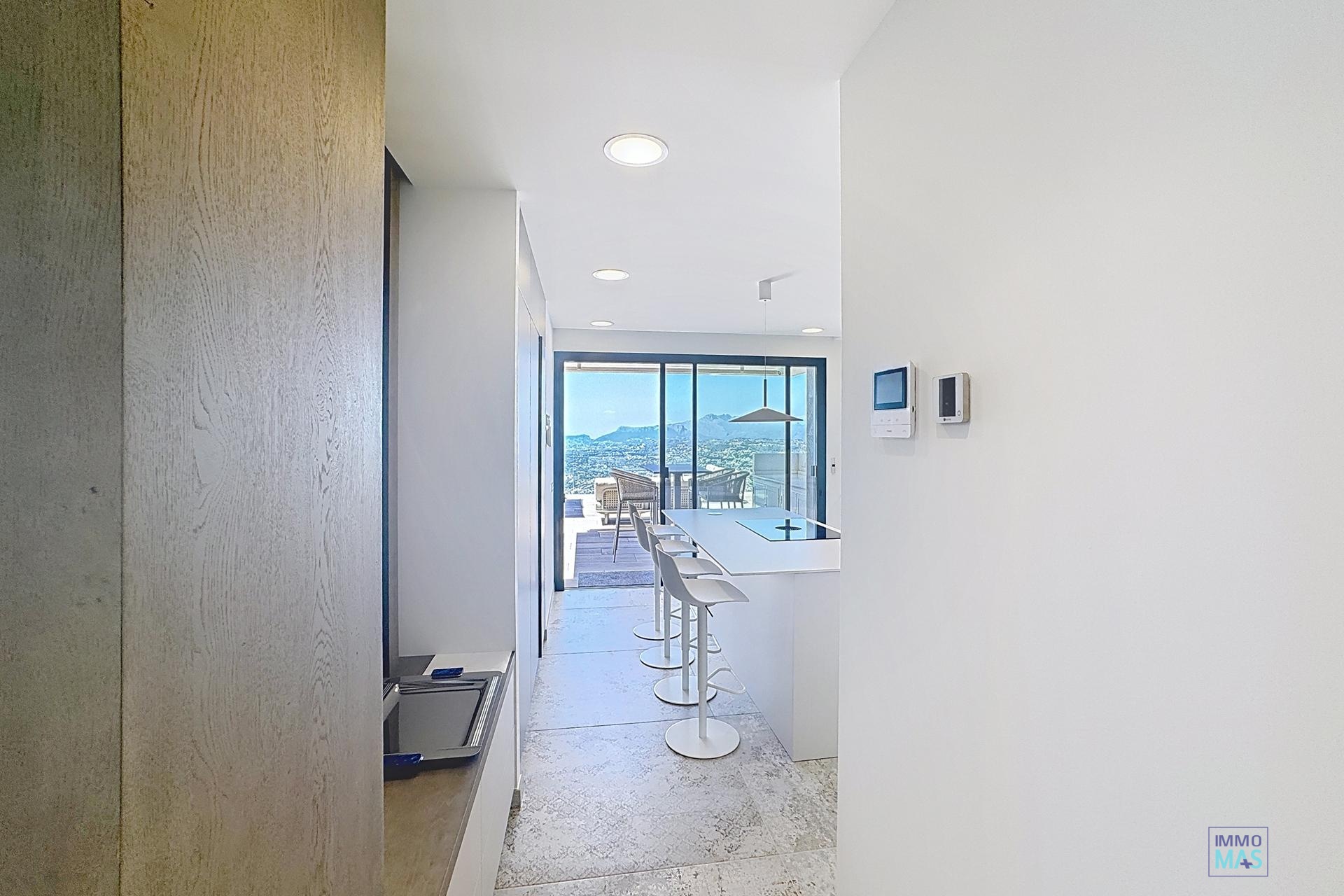 Luxury villa with panoramic sea views in the exclusive Jazmines area, Cumbre del SolContemporary design, maximum privacy and unparalleled viewsThis stunning luxury villa is located in one of the most privileged locations on the northern Costa Blanca: the Jazmines residential area, within the prestigious Cumbre del Sol development, between Moraira and Jávea, in the municipality of Benitachell. A unique enclave where cutting-edge architectural design blends with spectacular natural surroundings. The property stands out for its spectacular panoramic views of the Mediterranean Sea, stretching from the coast of Moraira and Benissa to the imposing Peñón de Ifach in Calpe, passing through the majestic Sierra de Bernia, all framed by the deep blue sea. An exclusive property distributed over three floorsWith a total built area of 544 m² on a 940 m² corner plot, this villa offers 5 double bedrooms, all with en-suite bathrooms, as well as spacious terraces, open-plan living areas and multiple outdoor spaces designed for year-round enjoyment. Entrance floor: functionality and stunning viewsThe property is accessed via an elegant entrance hall leading to the covered garage (46 m²), a utility room with laundry, and the main entrance to the property. From here, there is a spectacular open-plan area with a double-height living room and a huge panoramic window with sea views. On this same level, there are three double bedrooms, all with fitted wardrobes, en-suite bathrooms and access to terraces with views. The master bedroom also has an elegant dressing room and access to a private terrace. Ground floor: open spaces, light and connection to the outsideDescending a very comfortable internal staircase, we arrive at an area that impresses with its spaciousness and brightness. A double-height living-dining room features an 8-metre window that frames the sea as if it were a painting. The modern, fully equipped kitchen with a separate pantry opens onto the outdoor terrace. This floor also has a guest toilet. The kitchen and living room lead to the main terrace, where you will find the private swimming pool, the Mediterranean garden and a barbecue area with a summer kitchen, ideal for enjoying the climate and views all year round. Basement: guest apartment with independent accessAn external staircase leads to the guest apartment, comprising two double bedrooms, two full bathrooms, ducted air conditioning and a private covered terrace with spectacular views of the natural surroundings and the sea. Premium fittings and finishesEvery detail of this property has been carefully selected to ensure maximum comfort and efficiency: Underfloor heating and ducted air conditioningHome automation system, alarm and high-quality finishes15Kw photovoltaic installationSwimming pool with motorised coverOutdoor summer kitchen and landscaped areasThis villa not only offers a luxury experience, but also sustainability and energy efficiency. Would you like to live in a villa like this?If you are looking for an exclusive residence on the northern Costa Blanca, with privacy, contemporary design and unparalleled views, this property in the Jazmines area is for you. Contact us today and discover why so many people have chosen Cumbre del Sol to live or invest with complete peace of mind. Jazmines Residential Area – Cumbre del SolThe Jazmines area is one of the most exclusive within Cumbre del Sol, a well-established, peaceful environment that is highly valued by international buyers. It is located at the southern entrance of the development, which provides excellent connectivity to Moraira and Jávea. Its main attributes include: Privileged views of Ibiza, La Granadella, El Portet, the Peñón de Ifach and the Sierra de BerniaSpacious plots of between 800 m² and 1,200 m², with maximum privacyModern architectural design with high-end finishesUnrivalled natural surroundings, surrounded by sea and mountainsProximity to coves, high-quality services and leisure areasLiving in Jazmines is synonymous with well-being, exclusivity and quality of life. Here you are not just buying a house, you are buying a way of life.