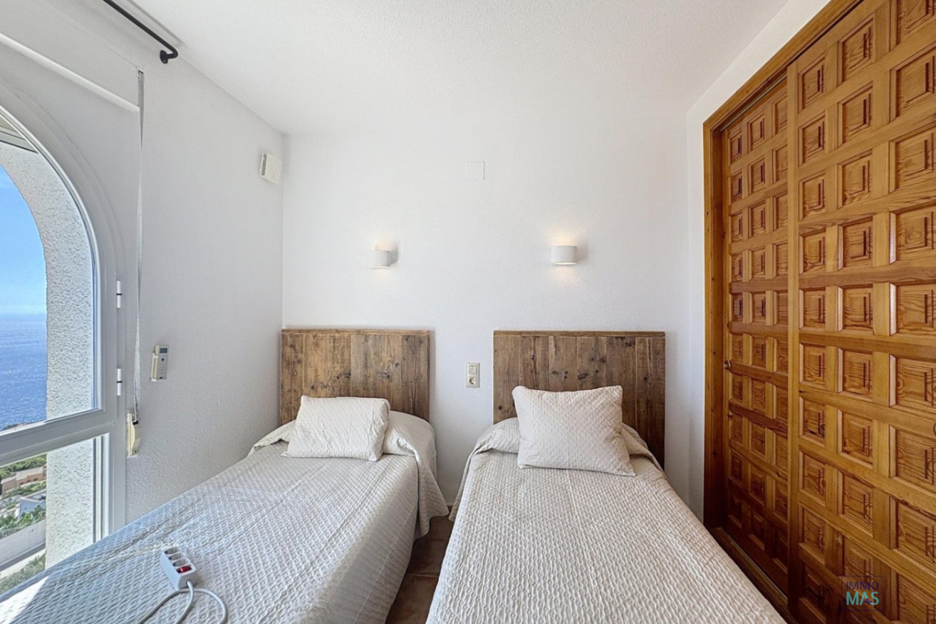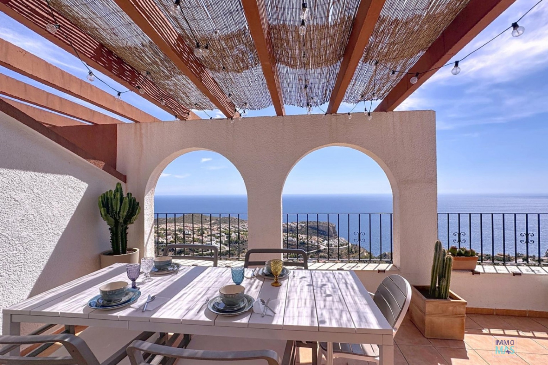 Duplex apartment with panoramic sea views in Pueblo Panorama – Cumbre del SolA unique property with the Mediterranean as its backdropWe present this exclusive duplex apartment located in the prestigious Cumbre del Sol residential complex, within the Pueblo Panorama Vistamar development, in the municipality of Benitachell, between the coastal towns of Jávea and Moraira. The property stands out for its impressive open views of the Mediterranean Sea, where on clear days you can even see the island of Ibiza on the horizon. Layout and featuresThe appartment has a total built area of 140 m², distributed as follows: 111 m² of living space20 m² of terrace 9 m² of communal areasInside we find: Three double bedrooms with fitted wardrobes.Two full bathrooms, functional and bright.Spacious living/dining room with access to the terrace.Open-plan kitchen, practical and well laid out.Three storage cupboards in the entrance hall, providing ample storage space.Spacious terrace to enjoy the spectacular sea views.The sea can be seen from almost every room in the property, making every day a unique experience. In addition, the appartment is equipped with hot and cold air conditioning in all bedrooms and in the living-dining room, ensuring comfort throughout the year. Comfort and exclusivity in Pueblo PanoramaThe Pueblo Panorama residential complex offers a well-maintained environment, with several uniquely designed communal swimming pools, sunny terraces and a peaceful, family atmosphere, ideal for year-round living or as a second home on the Costa Blanca. An opportunity in Cumbre del SolThis duplex is perfect for those looking for a property with Mediterranean charm, excellent qualities and views that you will fall in love with at first sight. Would you like to see this duplex apartment in person? Contact us today and we will be happy to arrange a viewing so you can discover everything this property has to offer. Residential area: Pueblo Panorama – Cumbre del SolPueblo Panorama is located within the prestigious Cumbre del Sol development in Benitachell. Its apartments are characterised by their south-east orientation, allowing you to enjoy sunshine throughout the day and spectacular views of the Mediterranean. The complex has 8 communal swimming pools spread over 4 exclusive locations, each with a double pool and large terraces for relaxation. The location is strategic: 1 km from the prestigious Lady Elizabeth School international school.2-3 km from the beaches and coves of Moraig and Los Tiestos.A few minutes from the Adelfas Shopping Centre with Pepe la Sal supermarket, pharmacy, La Cumbre restaurant and other services.6-7 km from the town centre and the beaches of Moraira.11 km from the famous Arenal beach in Jávea.A place that combines nature, services and tranquillity, ideal both as a permanent residence and for enjoying holidays on the northern Costa Blanca.