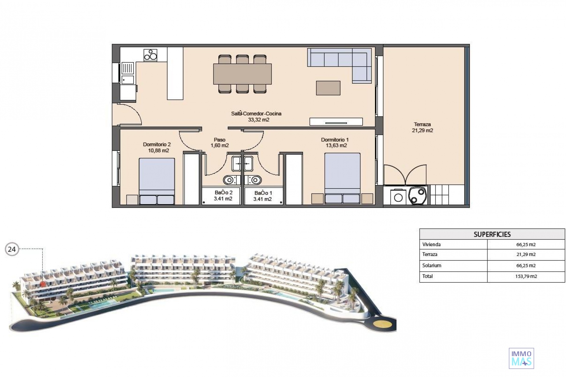 Exclusive New Build Residences with Sea Views in Finestrat, Alicante Prime Location with Panoramic Views of Benidorm and the Mediterranean Discover a unique and luxurious new development in Finestrat, Alicante, offering an exclusive lifestyle on the Costa Blanca. This gated residential complex features 99 modern apartments with 2 bedrooms and 2 bathrooms, just 2.3 km from the beaches of Benidorm, with breathtaking views of the Mediterranean Sea and the city skyline. Set in an elevated position, the development enjoys a peaceful natural environment while remaining close to the lively urban centre of Benidorm. Finestrat is a highly sought-after area that combines tranquility, nature, and proximity to all essential services. Premium Amenities for a Mediterranean Lifestyle Designed with comfort and leisure in mind, the residential complex includes: Three communal swimming pools for relaxation and enjoyment Indoor and outdoor gyms for fitness enthusiasts Children’s playground and padel court for family fun Landscaped green areas and walking paths for peaceful strolls All apartments are built with top-quality materials and finishes, such as: Aluminium windows with thermal break and double glazing for energy efficiency and noise insulation LED lighting throughout the home Furnished bathrooms with backlit mirrors Armoured entrance door for maximum security Outstanding Connectivity and Services The development offers excellent connections to key points of interest: Alicante International Airport – only 55 km (around 40 minutes by car) La Marina Shopping Centre – just 3 km away, featuring shops, restaurants, and entertainment options Levante and Poniente beaches – under 10 minutes by car Puig Campana Natural Park – ideal for hiking, cycling, and outdoor activities Renowned theme parks such as Terra Mítica and Aqualandia – within 5 km Close to leading medical centres and public and private schools Modern Design and Natural Light Each home is designed to make the most of natural light through expansive windows that frame stunning views of Benidorm and the sea. The interiors offer open-plan layouts, functional spaces, and superior insulation for year-round comfort. Whether you are seeking a permanent home, a vacation property, or a sound investment, this new development in Finestrat delivers a blend of serenity, luxury, and proximity to the vibrant city of Benidorm. Secure Your Dream Property on the Costa Blanca Don't miss this opportunity to own a beautiful new apartment in one of the most desirable areas of Alicante. Contact us today to request more information, schedule a visit, or reserve your new home in Finestrat.
