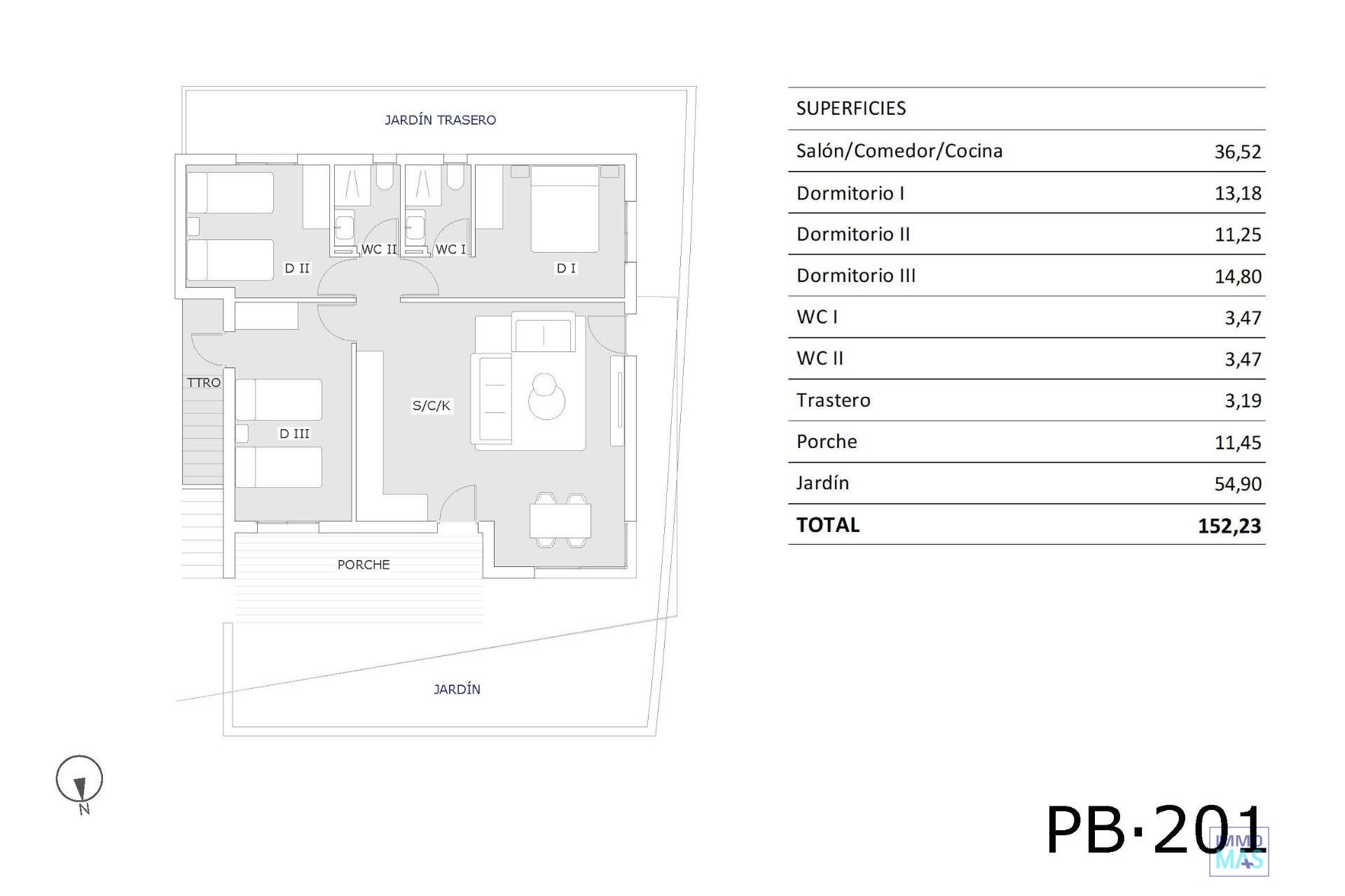Newly built bungalows in San Miguel de Salinas with 2 communal swimming pools Mediterranean Lifestyle in a Natural Setting Discover this modern residential development of new-build bungalows in San Miguel de Salinas, a town in the south of the province of Alicante, in the Vega Baja del Segura region. This charming municipality combines proximity to the sea with the tranquillity of nature, making it an ideal place for both permanent residence and holidays. Housing Options for All Lifestyles The residential complex offers bungalow-style apartments with 2 or 3 bedrooms distributed in two options: Ground floor with private garden and storage room Upper floor with private solarium Each home has been designed with a modern and functional approach, providing comfort, natural light and outdoor spaces to enjoy the Mediterranean climate all year round. Communal Areas for Family Enjoyment This residential complex is completely enclosed and has excellent communal areas: 2 large communal swimming pools for adults and children Over 2,600 m² of landscaped green areas Children's play area These facilities make the residential complex an ideal place for families, couples and retirees looking for quality of life in a safe and relaxed environment. Modern Qualities and Energy Efficiency The homes feature high-quality materials and meticulous finishes: Fully fitted kitchen Exterior carpentry with thermal break and double glazing Reinforced entrance door Bathroom furniture included Pre-installation of split air conditioning in living room and bedrooms Excellent Location Close to Golf, Beaches and Services San Miguel de Salinas is strategically located near tourist and natural areas: Golf courses such as Vistabella, Las Colinas and Campoamor less than 10 km away Orihuela Costa beaches 11 km away Torrevieja and La Mata lagoons just 8 km away La Zenia Boulevard shopping centre 9 km away Alicante-Elche Airport 58 km away (35 minutes by car) Murcia International Airport 63 km away (1 hour by car) Your new home on the Costa Blanca These properties represent an excellent opportunity for those seeking quality, comfort and location. Contact us now for more information or to schedule your visit and take the first step towards your life on the Costa Blanca.