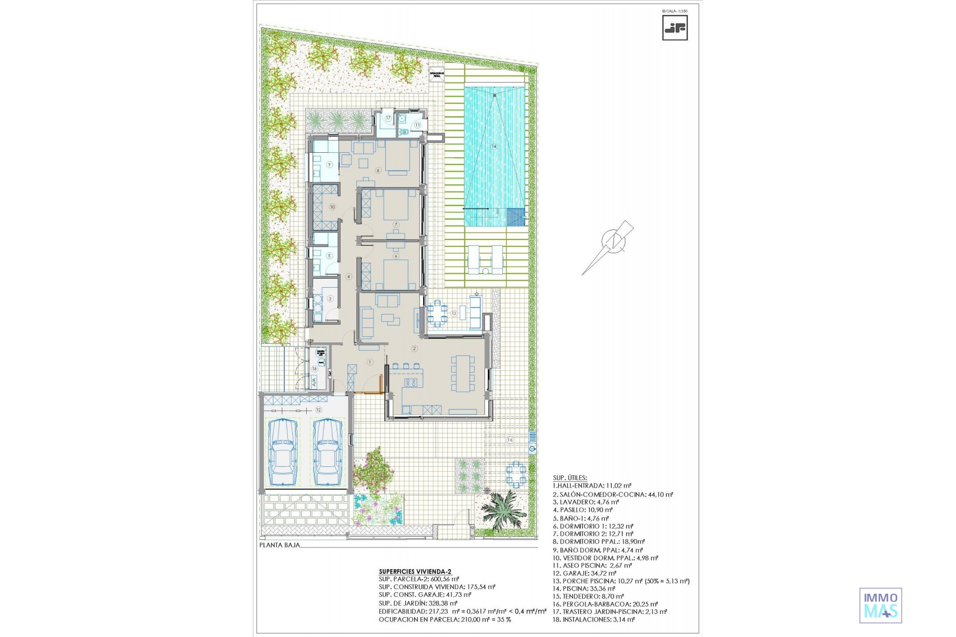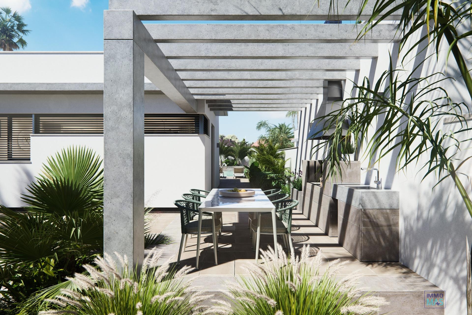 Three exclusive villas in a residential area in San Javier with 600 m2 of plot and 217 m2 of built area on one floor, private pool and large garden areas.