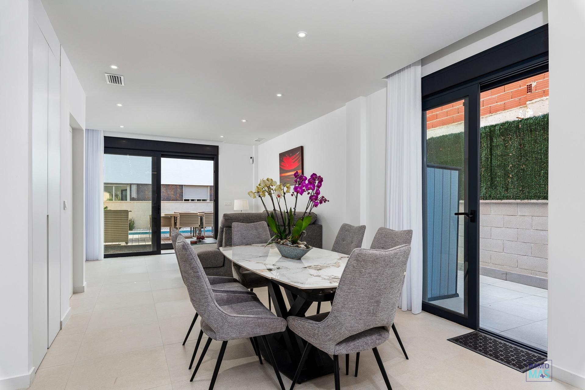 NEW BUILD SEMI-DETACHED VILLAS IN GUARDAMAR DEL SEGURA New Build residential of 8 semi-detached villas in Guardamar del Segura. Semi-detached villas with 4 bedrooms and 4 bathrooms build over 3 floors, open plan kitchen with dinning/lounge area and the large gardens and parking space on the plot. Guardamar del Segura is a town located on the Costa Blanca South. With its 11 kilometers of natural beach and its large pine forest. Guardamar is a quiet town to live in, it has all the services throughout the year such as restaurants, bars, shops, banks, places for leisure, etc. Every Wednesday, in the central streets of the town, a market is organized where many people go to buy products such as food, clothing, furniture, animals, etc. It is a great claim and inhabitants of the surrounding town come to Guardamar every Wednesday to visit the market. Guardamar del Segura has a large port with activities throughout the year, it has a large sports centre with paddle tennis, tennis, soccer and a large heated swimming pool that works all year round. It also has a library where there is free wifi and computers. Guardamar del Segura is only 20km away from the Alicante - Elche (El Altet) airport, where there are many flights every day with connections to the main European cities, due to the demand for tourists on the Costa Blanca.