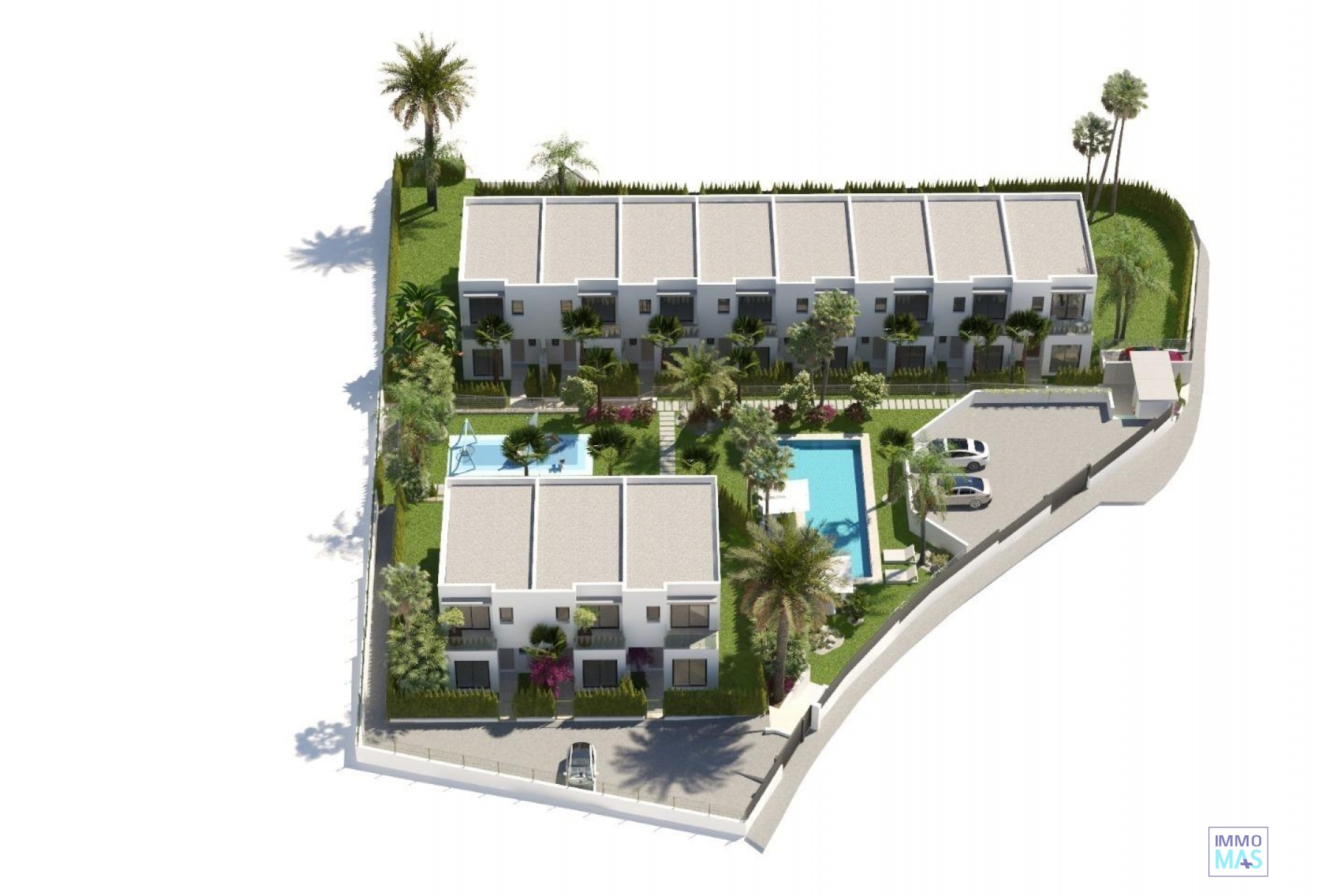 NEW BUILD TOWNHOUSES IN FINESTRAT New Build residential of townhouses and semi-detached villas in Sierra Cortina, Finestrat. All properties will have 3 spacious bedrooms and 3 elegant bathrooms to provide comfort and privacy to its inhabitants. The spacious living-dining room, with its integrated modern kitchen, will be the heart of the house, where family and friends will be able to gather and enjoy unforgettable moments. In addition, the house will be equipped with pre-installation for ducted air conditioning. Cutting-edge technology will be a prominent feature of this house, as it will be fully automated thanks to an advanced home automation system. From lighting control to security management, everything will be at your fingertips. Private garden will be an oasis of tranquillity where you can relax and enjoy nature. In addition, the property will have an impressive communal swimming pool, ideal for cooling off and socialising with neighbours, and a children's playground. New Build properties will offer a comfortable and functional space for the whole family. It will also have a private parking space for added convenience. In short, this brand new properties in Sierra Cortina will be a perfect residence for those who are looking for a comfortable and luxurious lifestyle. This magnificent New Built properties will be located in the exclusive Sierra Cortina urbanisation, just 5 minutes from Benidorm.