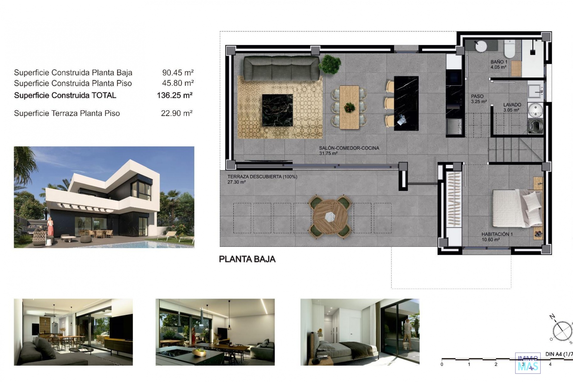 NEW BUILD VILLAS IN ROJALES New Build exclusive development of villas in Rojales. Beautiful villas build over 2 floors with 3 bedrooms, 3 bathrooms, open plan kitchen with lounge area and terrace. Villas build on independent plots where you have garden with private pool and parking space. An options for a solarium at an extra cost. There a 3 golf courses nearby and the blue flag beaches are just a short 10 minute drive away. Rojales it is a lovely village with all services such as supermarkets, pharmacies, banks, restaurants and natural park located very close to the villas. There are several golf courses close by as well as water parks in nearby Rojales and Torrevieja. Alicante & Murcia airports are 45 minutes drive away.