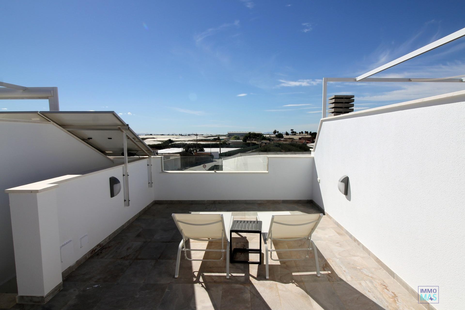 Townhouses has 4 bedrooms, 2 bathrooms, open plan kitchen, living room with direct access to the cozy pool area, terrace at the back with parking space , terrace and large roof solarium.