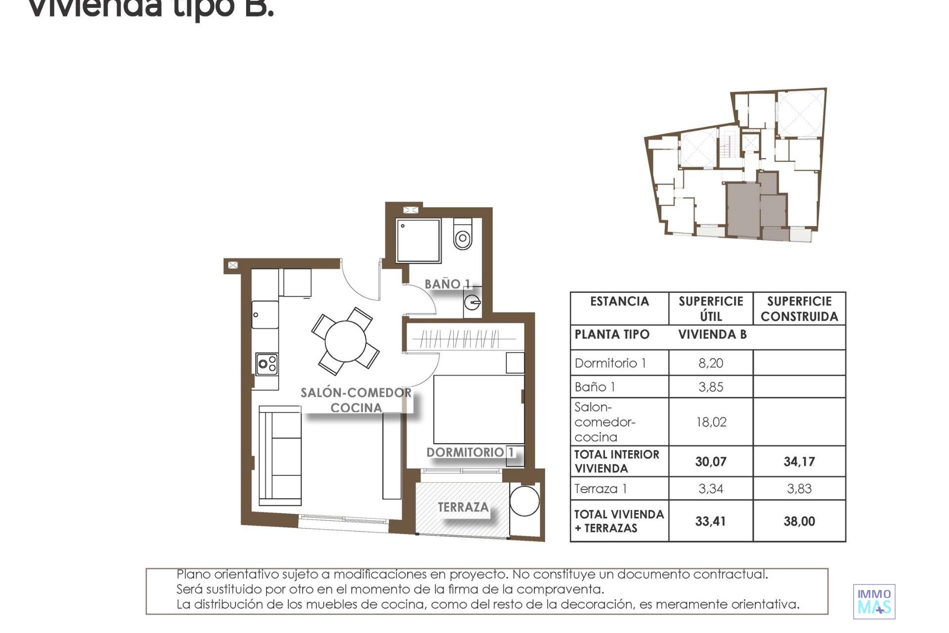 Modern Apartments for Sale Just 250 m from El Cura Beach in Torrevieja, Costa Blanca Exclusive New Development Near the Sea This new residential complex of 16 contemporary homes is designed to capture the essence of Mediterranean living. Located just 250 meters from El Cura Beach in Torrevieja (Alicante), this development offers a perfect blend of comfort, design, and location. With all services nearby and excellent public transport connections, including the main bus station within walking distance, it provides an ideal setting for both year-round living and holidays by the sea. Modern Design and Functional Living Spaces The development includes a selection of 1- and 2-bedroom homes with 1 or 2 bathrooms, offering different layouts to suit every lifestyle. Each residence is characterized by bright, open spaces, elegant finishes, and excellent build quality. Features include fitted wardrobes, pre-installation of ducted air conditioning, elevator access, and high-quality materials throughout. The ground floor apartments and standard units boast private terraces ideal for relaxing outdoors, while the penthouses feature spacious private solariums — perfect for sunbathing, hosting dinners, or enjoying the beautiful Mediterranean sunsets. Exclusive Communal Areas for Your Enjoyment The residential complex is designed for comfort and social living. Residents can enjoy a spectacular rooftop communal area featuring a swimming pool, sunbathing spaces with loungers, and landscaped zones — a peaceful retreat for summer relaxation. Prime Location in Torrevieja Torrevieja is one of the most popular destinations on the Costa Blanca, known for its crystal-clear beaches, pleasant year-round climate, and vibrant seaside atmosphere. Living here means enjoying daily walks along the promenade, dining in beachfront restaurants, and experiencing the authentic Mediterranean lifestyle. Distances to Key Points of Interest El Cura Beach: 250 m Torrevieja Marina and Port: 2 km Las Habaneras Shopping Center: 3 km Nearest Golf Courses: 7–10 km Alicante-Elche Airport: 45 km The Perfect Home by the Sea Whether you are looking for a permanent residence, a holiday home, or a smart investment opportunity, these new-build apartments in Torrevieja offer the perfect combination of modern living, coastal charm, and convenience. Contact us today for more information or to schedule your visit and secure your dream home just steps from El Cura Beach in Torrevieja.