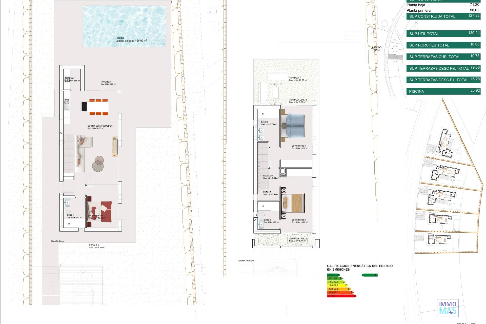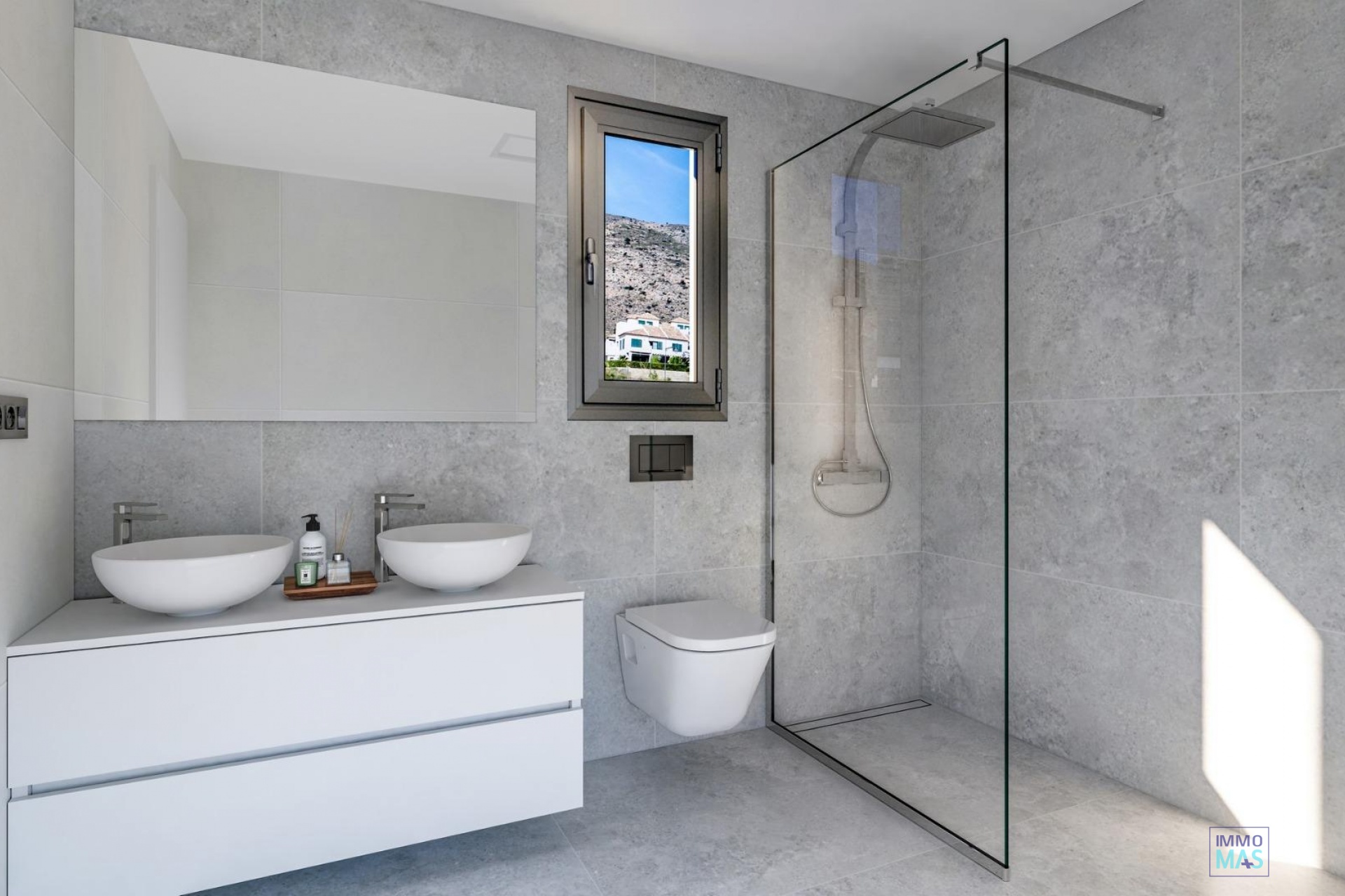 NEW BUILD VILLAS IN FINESTRAT WITH SEA VIEWS New Build Luxury villas in Sierra Cortina, Finestrat. Villas with 3 bedrooms and 3 bathrooms, open plan kitchen with lounge area, terrace with magnificent views over Benidorm, private garden with swimming pool and parking space. Villas build with top quality materials. Finestrat located in the Marina Baixa region of the Costa Blanca, close to neighbouring Benidorm and about 40 kilometres from the city of Alicante and the international airport. The village is situated on the mountainside of Puig Campana and offers beautiful views of the mountains, the coast and the Mediterranean Sea. Benidorm is just a five-minute drive from the properties and offers all the services you would need including shops, bars, restaurants, supermarkets, banks, pharmacies and several private international schools.