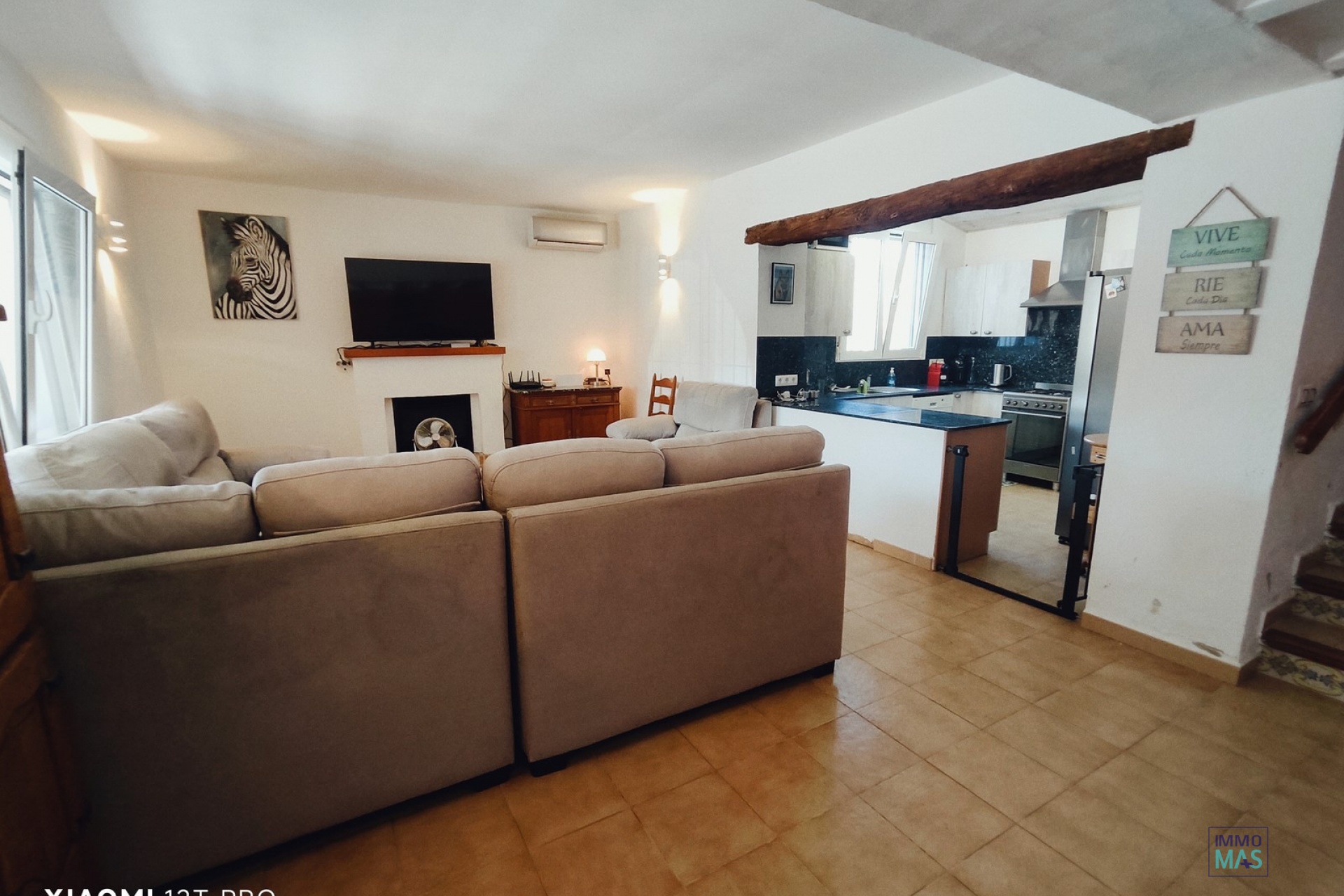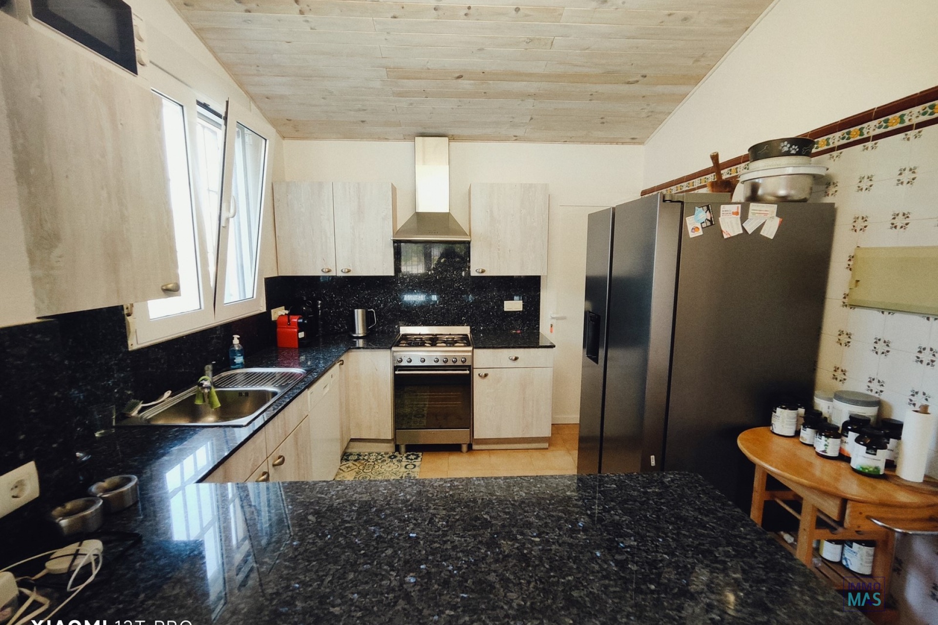 Outside there is a covered outdoor kitchen with barbecue and sink, as well as a bathroom with shower and toilet. In front of the house is the 10 m x 5 m swimming pool. An awning has been installed at the front of the terrace. The garden has an automatic sprinkler system, a lawn and is planted with various low palm trees, recently planted olive trees, apricot trees, orange trees and fig trees.