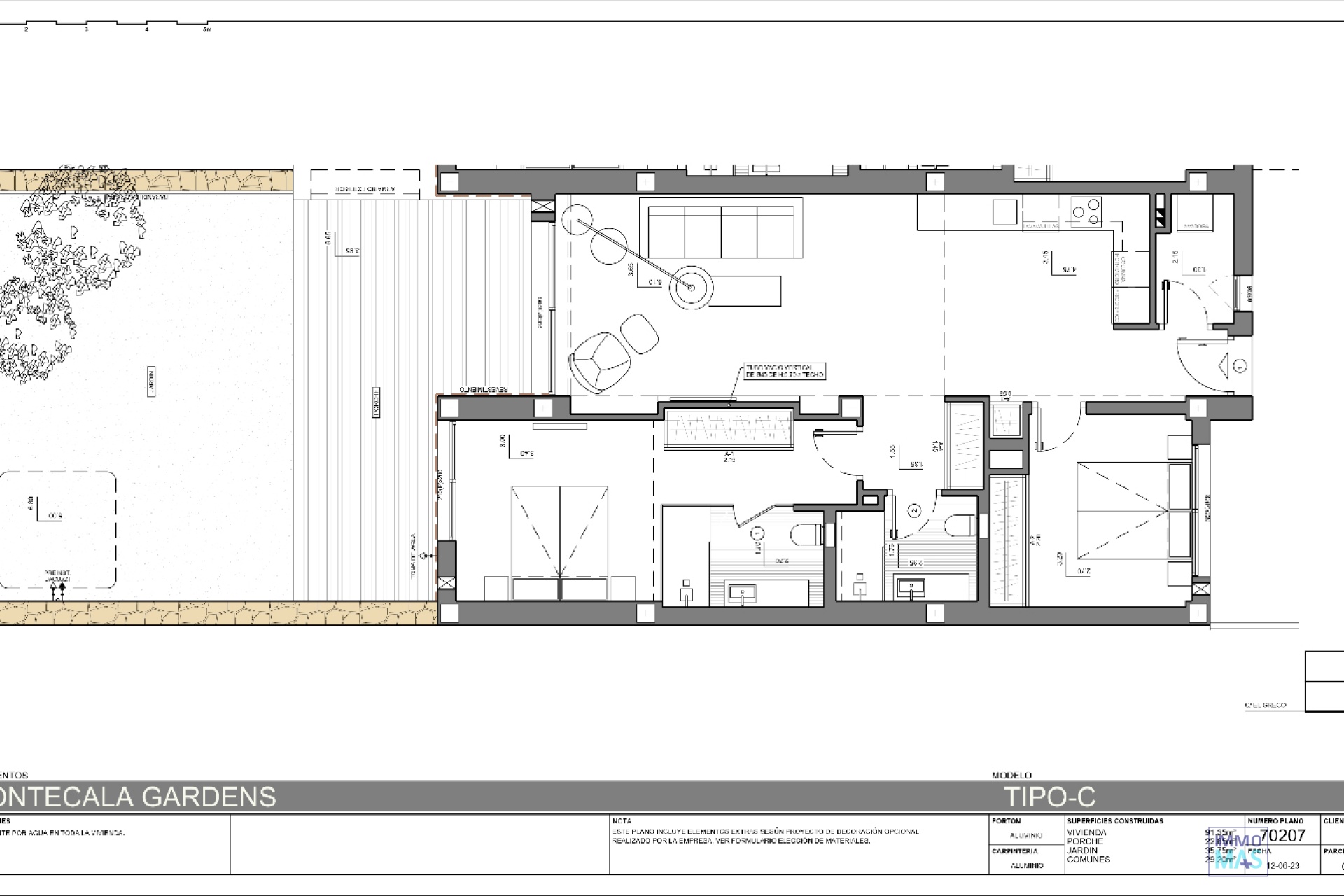 Brand new apartment with private garden in Montecala Gardens – Cumbre del SolYour new turnkey home between Jávea and MorairaWe present this exclusive brand new apartment with private garden, located in the modern Montecala Gardens residential complex, within the prestigious Cumbre del Sol urbanisation, in Benitachell (Alicante). An incomparable natural setting between Javea and Moraira, ideal for enjoying the authentic Mediterranean lifestyle. With a total built area of 143 m², this property stands out for its contemporary design, its great luminosity and the comfort of its high-quality finishes. The property comprises 91 m² of interior space, 23 m² of covered terrace, 29 m² of communal areas and a 36 m² private garden, perfect for relaxing, spending time with the family or installing a jacuzzi, for which the property already has full pre-installation. Modern and functional layoutThe apartment has been carefully designed to offer spacious, bright rooms that connect with the outside. The layout includes: Master bedroom with en-suite bathroom, dressing room and direct access to the terrace and garden.Double bedroom with built-in wardrobes.Full bathroom with shower.Separate laundry room.Kitchen open to the living-dining room, fully equipped with top brand appliances and an osmosis system for purified water.Spacious living-dining room with large windows that flood the space with natural light and connect to the covered terrace and private garden.Every detail has been designed to provide well-being, comfort and energy efficiency throughout the year. Premium fittings and finishesThis flat is delivered turnkey ready, fully finished and equipped with state-of-the-art materials and systems: Underfloor heating.Ducted air conditioning.Aerothermal system for air conditioning and domestic hot water.Mechanical ventilation system for continuous renewal of indoor air.Alarm system installed.Lift in the building, despite only having two floors, ensuring total accessibility.A home that combines technology, design and sustainability, designed for those looking for a modern, efficient property that is ready to enjoy from day one. Communal areas and residential environmentMontecala Gardens is part of the prestigious Pueblo Montecala complex and stands out for its extensive communal areas, designed for relaxation and outdoor living: Lagoon-style swimming pool, perfect for sunny days.Additional swimming pool for year-round use.Spacious solariums and landscaped terraces.Social club and communal areas.Protected natural environment, next to Cala Llebeig and the Portet de Moraira area.Strategic location with all amenities nearbyThe residential complex is perfectly connected to all essential amenities: 700 metres: direct access to Cala Llebeig.2 to 3 km: Moraig beach, Cala de los Tiestos and Adelfas shopping centre with Pepe La Sal supermarket, La Cumbre restaurant, pharmacy, hairdresser and more.4 to 5 km: Mercadona supermarket, Lady Elisabeth International School, riding school and sports centre with paddle tennis and tennis courts.6 to 7 km: Moraira town centre and Portet beach.13 km: Arenal de Jávea beach, ideal for walks, gastronomy and water sports.An exclusive opportunity on the northern Costa BlancaThis apartment represents a unique opportunity for those looking for a modern, efficient home with a private garden in one of the most sought-after residential areas on the northern Costa Blanca. If you would like more information or would like to visit the property, please contact us. We will be delighted to accompany you and show you everything this magnificent home has to offer. Summary of the Montecala Gardens Residential Area – Cumbre del SolMontecala Gardens is a modern and exclusive apartment complex within the Pueblo Montecala residential area, in the Cumbre del Sol development. It is characterised by its contemporary architecture, its high-quality communal areas and its location in a protected natural environment, with views of the valley and the sea. Residents enjoy lagoon-style swimming pools, landscaped solariums, a social club and direct access to natural coves such as Llebeig and Morach. Furthermore, its proximity to amenities, international schools and urban centres makes it one of the most attractive places to live or invest on the northern Costa Blanca.