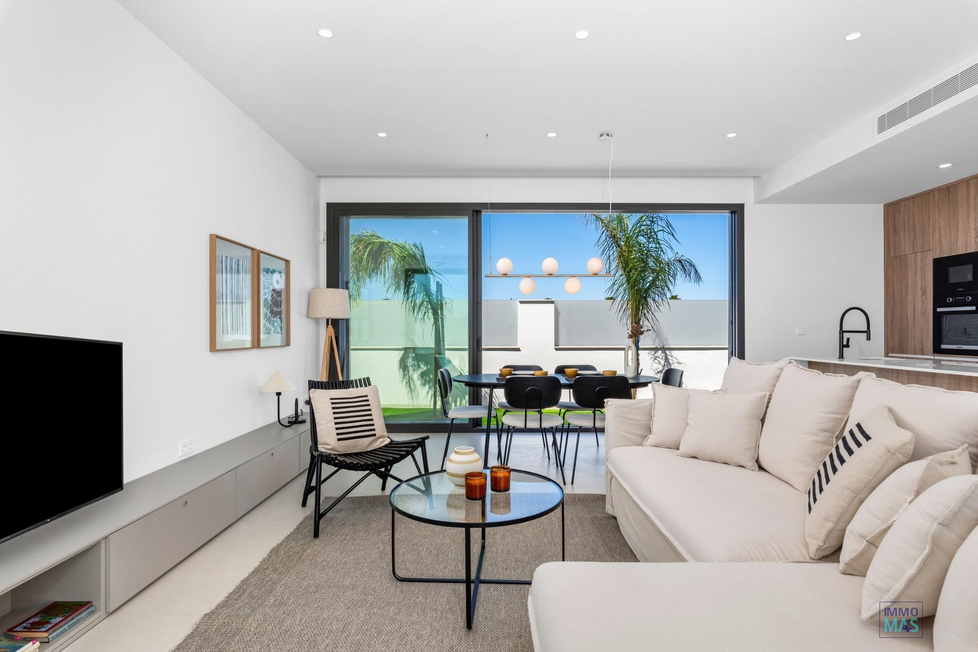 New Build Villas Near Serena Golf in Los Alcazares Modern Villas in a Prime Coastal and Golf Location This exclusive new build residential project offers modern villas located in Los Alcazares, just a short distance from the prestigious Serena Golf and only 1.2 km from the sandy beaches of the Mar Menor. Set in one of the most attractive areas of the Region of Murcia, these homes combine contemporary design, comfort and an excellent location close to the sea, golf and all daily services. Los Alcazares is a well established coastal town known for its relaxed lifestyle, long promenade, water sports and mild climate throughout the year. Single Level Design with Private Outdoor Spaces The development features stylish villas with 3 bedrooms and 2 bathrooms, available in two different built sizes of approximately 106 sqm and 130 sqm. The larger model also includes an additional guest toilet. All villas are designed on a single floor, offering practical and comfortable living. The open plan kitchen, dining and living area connects directly to a terrace and private garden with swimming pool, creating an ideal space for indoor and outdoor living. Each property also includes a private solarium and on plot parking. High Quality Finishes and Modern Equipment These villas are built with high quality materials and equipped with modern features. The fully fitted kitchens are available in white gloss or wood finish and include quartz worktops, stainless steel sink, induction hob with integrated extractor, oven, microwave, washing machine, integrated fridge and dishwasher. Bathrooms are fitted with furniture, mirrors, lighting and electric towel heaters. Additional features include electric blinds in bedrooms, LED lighting throughout the property and a complete ducted air conditioning system by Fujitsu. Private Pool and Energy Efficient Comfort Each villa includes a private swimming pool finished with blue ceramic tiles, integrated steps and white LED lighting. The pool is prepared with pre installation for a heat pump. The combination of efficient climate control, modern construction and thoughtful design ensures comfort all year round. Excellent Connectivity and Key Distances The villas are within walking distance of the town centre of Los Alcazares and very close to Serena Golf. The beach is approximately 1.2 km away. Cartagena city is around 20 km away, offering a rich cultural and gastronomic scene. Murcia Corvera International Airport is about 22 km away, and Alicante Airport is approximately 90 km. Several golf courses and marinas are also nearby, making this location ideal for both permanent living and holidays. Your Ideal Home by the Sea and Golf If you are looking for a modern new build villa near the beach and golf in Los Alcazares, contact us today for more information or to arrange a private viewing.