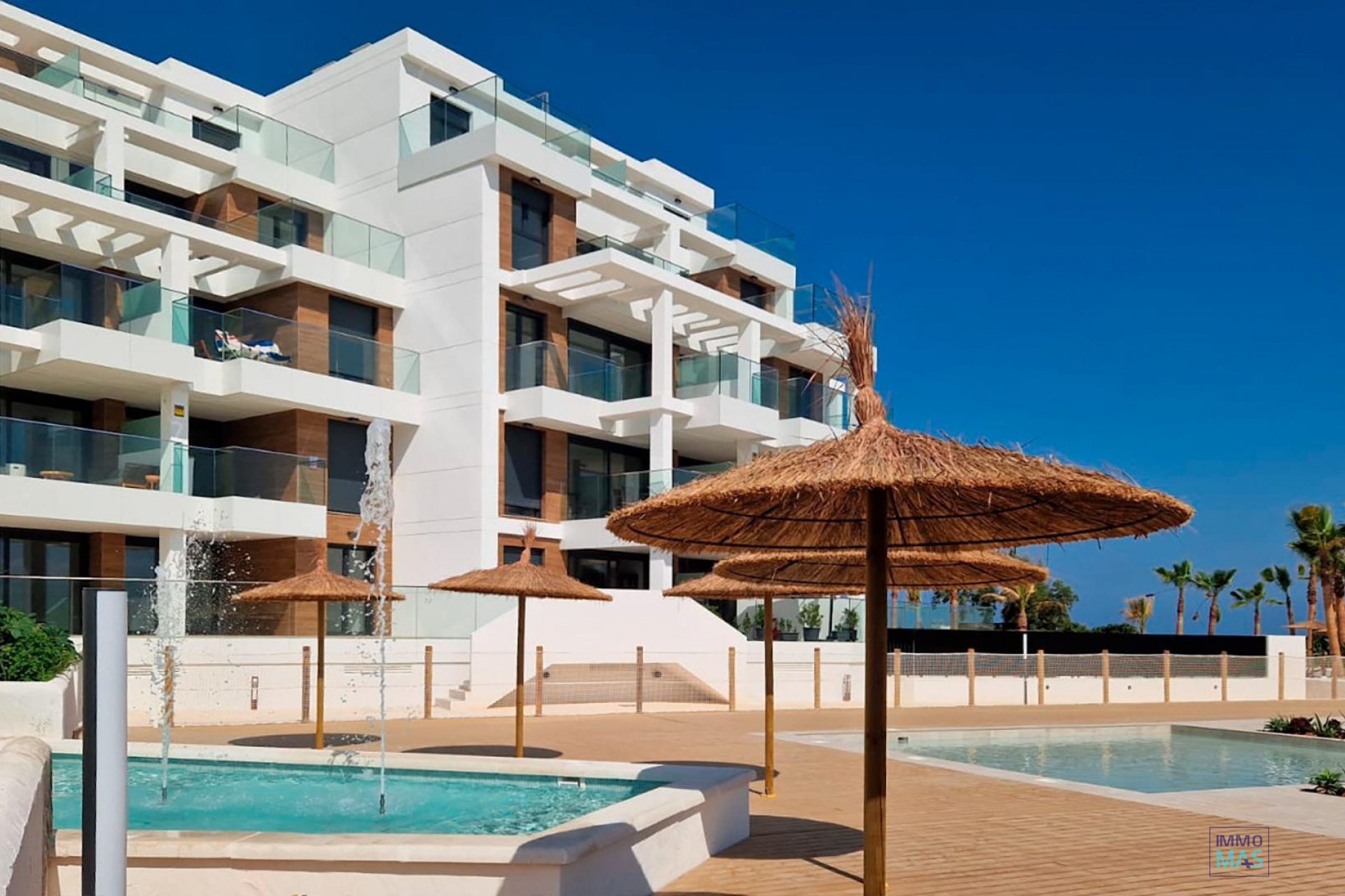MEDITERRANEAN HOUSING A FEW METERS FROM THE SEA Exclusive complex of Mediterranean construction a few meters from the sea. On the beachfront, in front of L´Estanyo beach (7 km from the town center). Apartments and penthouses with two and three bedrooms, all with sea views. Magnificent common areas with a large garden area and two swimming pools, one for children. In an unbeatable location, in the area known as L´Estanyo that gives its name to its beach, with calm waters, an extensive area of ​​golden sand surrounded by all facilities and services, as well as leisure and restaurant venues.
