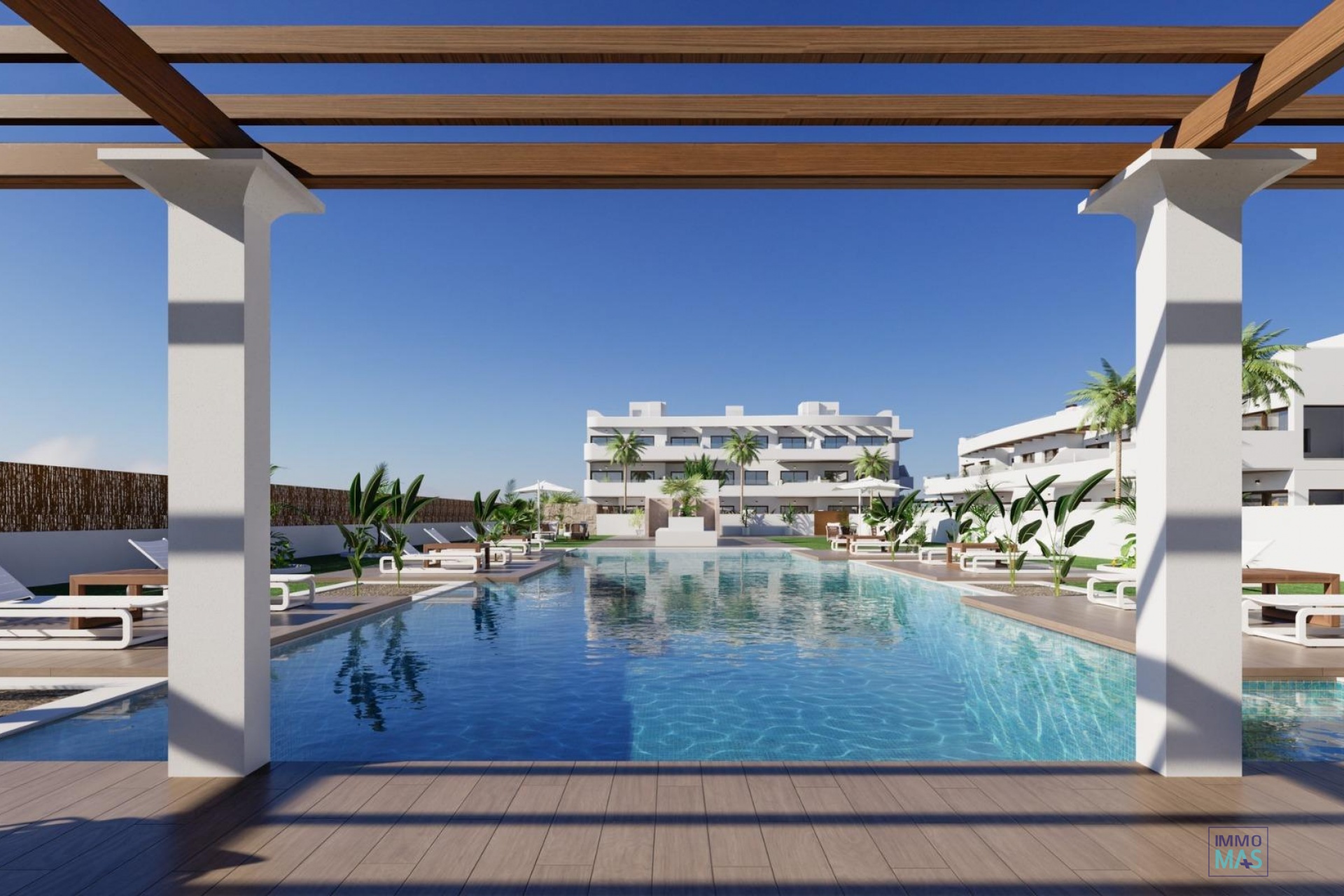 New Build Residential Complex Near Serena Golf and the Mar Menor in Los Alcazares Modern Coastal Living on the Costa Calida Discover this attractive new build residential complex located in Los Alcazares, one of the most popular seaside towns on the Costa Calida. Situated just 500 m from the beaches of the Mar Menor and within walking distance of the town center, this development offers an excellent combination of coastal living, golf surroundings and everyday convenience. Los Alcazares is well known for its relaxed atmosphere, long promenades, warm shallow waters and a wide range of restaurants, shops and services open all year round. Contemporary Apartments Designed for Comfort The development consists of 29 modern homes with 2 or 3 bedrooms, designed with clean architectural lines and high quality finishes. Buyers can choose between ground floor apartments with private garden and terrace, middle floor homes with spacious terraces, or penthouses with private terrace and rooftop solarium offering open views. Many of the properties enjoy views towards Serena Golf and the Mar Menor, creating a calm and pleasant living environment. All homes are designed to maximize natural light and functionality, making them ideal as a permanent residence, holiday home or investment property. High Quality Features and Communal Areas Each property includes a private parking space and a storage room. The specifications are designed to provide comfort and energy efficiency, including double glazed windows with thermal break, pre installation of ducted air conditioning, aerothermal system for domestic hot water, electric shutters in bedrooms and a complete interior and exterior lighting package. Bathrooms are delivered fully equipped with furniture, mirror and shower screen. Residents can enjoy attractive communal areas with landscaped gardens and a communal swimming pool, perfect for relaxing and enjoying the Mediterranean climate. Selected blocks are equipped with lifts for added convenience. Prime Location Between Golf and Sea This residential complex enjoys a privileged location next to Serena Golf, one of the most renowned golf courses in the area, and just a short walk from the calm waters of the Mar Menor. The area is ideal for swimming, sailing, paddleboarding and other water sports throughout the year. Key distances include Mar Menor beaches at 0.5 km, Serena Golf directly next to the development, Los Alcazares town center at 2 km, Cartagena at 22 km and Murcia city at 40 km. Murcia Corvera Airport is approximately 30 km away and Alicante Airport is around 90 km. An Ideal Home or Investment Opportunity With its excellent location, modern design and proximity to both golf and the sea, this new residential complex in Los Alcazares offers an outstanding lifestyle opportunity on the Costa Calida. Contact us today to receive more information or to arrange a private viewing and secure your new home by the Mar Menor.