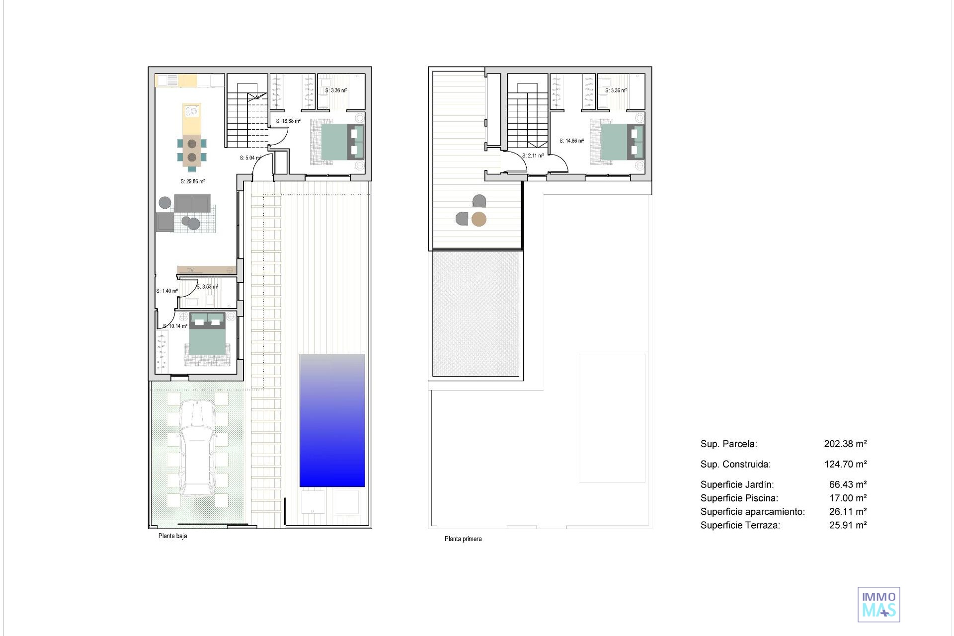 NEW BUILD TOWNHOUSES IN SAN JAVIER New Build luxury complex of 24 one level villas or on 2 floors with private pool, terraced area and solarium with Summer kitchen that allows you to enjoy all hours of sunshine, every day of the year. Each villa has 2 or 3 bedrooms and 2 fitted bathrooms on one level or 3 bedrooms and 3 fitted bathrooms on two levels. Designed with a contemporary style and open planned concept, comprising a fully-fitted kitchen and lounge-dining room. The development is located in San Javier (Murcia), near the beach, surrounded by services, parks, sports facilities and several Golf Courses. The property will meet the highest standards and will be equipped with: Private swimming pool with shower. Kitchen completely furnished and equipped with oven, microwave, fridge, integrated dishwasher, hob and extractor fan. Lighting: inside the property (dining room, kitchen, corridors and bathrooms) as well as in outdoor areas. Lined wardrobes with drawers. Fully fitted bathrooms with toilet, vanity unit, mirror and shower with screen panels. Pre-installation for ducted air conditioning. Solarium with Summer kitchen. Parking space on the plot. San Javier is close to all amenities with easy access to the beach, water sports, shops and the transport network. Here you can enjoy all of the facilities that San Javier has to offer such as the local shops, bars and restaurants as well as being near to shopping centres, the airport of Murcia and all of the beautiful places to be found along the Mar Menor. Corvera/Murcia airport is 30 minutes away and Alicante airport is 45 minutes away.