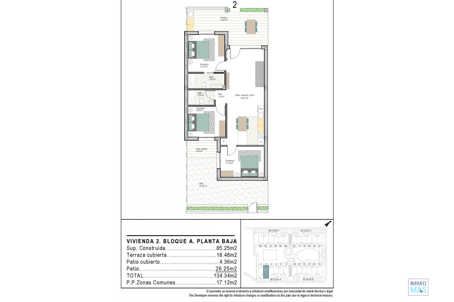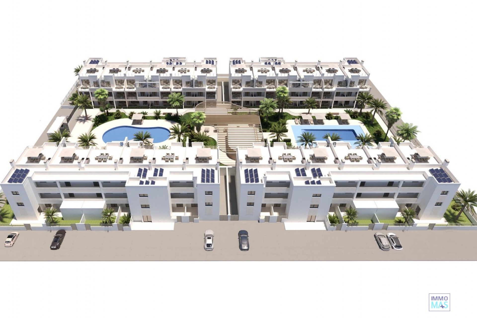 Modern New Build Apartments in San Cayetano, Torrepacheco, Murcia Contemporary Living in a Peaceful Mediterranean Setting This exclusive new residential complex is located in San Cayetano, Murcia, part of the municipality of Torre Pacheco, just 9 km from the sea and surrounded by several renowned golf courses. The project combines tranquility, comfort and contemporary design, offering an ideal environment for permanent living, holiday use or investment on the Costa Calida. The development consists of 72 apartments with 2 and 3 bedrooms and 2 bathrooms, one of them ensuite, distributed across four modern buildings. A second phase with bungalows and villas is also planned, adding further value and appeal to the area. Designed Communal Areas for Relaxation and Wellbeing Residents will enjoy carefully landscaped communal spaces that include two swimming pools, beautiful gardens and a fully equipped gym. These areas create a pleasant and social environment where neighbors can relax, exercise and enjoy the Mediterranean lifestyle. The residential complex also features 40 kW of photovoltaic solar panels that help support the community electricity costs, contributing to a more sustainable and energy efficient living environment. Apartments with Private Outdoor Spaces and Solarium Each apartment is designed to make the most of outdoor living. Ground floor properties include private gardens, first floor apartments offer spacious terraces, and top floor homes benefit from both a terrace and a private rooftop solarium. All properties include a summer kitchen on the terrace or solarium, perfect for enjoying the sun all year round. All homes come with an outdoor parking space and a private storage room in the basement, adding extra convenience and practicality. Quality Features and Energy Efficient Installations These new build apartments are delivered with quality finishes and modern installations to ensure comfort and functionality, including: Fully fitted kitchen with appliances Fully equipped bathrooms with furniture, mirror, lighting and shower screens Preinstallation for ducted air conditioning Aerothermal system for hot water The combination of modern materials and energy efficient systems makes these homes ideal for year round use. Excellent Location Close to Golf, Beaches and Services San Cayetano is a quiet and well connected village with local amenities, shops and services. Its strategic location allows easy access to beaches, golf courses and major transport links. Key distances to points of interest include: Mar Menor beaches 9 km Roda Golf 6 km La Serena Golf 14 km Los Alcazares 10 km Cartagena 30 km Murcia Corvera Airport 25 km Alicante Airport 90 km Secure Your Property in San Cayetano Today This modern residential complex offers an excellent opportunity to enjoy Mediterranean living in a peaceful yet well connected area. Contact us today for more information and reserve your new build apartment in San Cayetano. 421