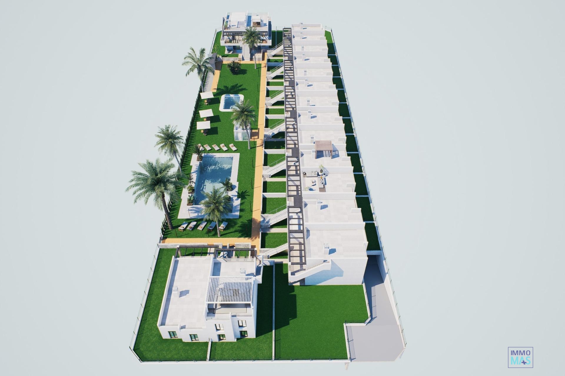 New Build Bungalows with Garden or Solarium Near the Beach in Pilar de la Horadada Modern Mediterranean Homes Designed for Comfort Discover this exclusive new build residential complex in Pilar de la Horadada, offering contemporary bungalows located less than 2 km from the beach. Designed to combine comfort, style and functionality, these homes are ideal for year round living, holidays or as a smart investment on the Costa Blanca. The development offers a choice between ground floor bungalows with private gardens and top floor bungalows with private rooftop solariums. Each property is thoughtfully designed to maximize outdoor living and make the most of the Mediterranean climate. Spacious 2 Bedroom Properties with High Quality Finishes Each bungalow features 2 bedrooms and 2 bathrooms, one of them ensuite, along with a private parking space in the underground garage. The homes are built with quality materials and modern finishes that ensure energy efficiency and durability. Key features include: Preinstallation for ducted air conditioning Aluminium exterior carpentry with double glazing and motorized shutters Security entrance door for peace of mind Aerothermal system for efficient hot water production Built in wardrobes in all bedrooms Fully equipped bathrooms with furniture and shower screens These specifications provide a comfortable and practical home suitable for all seasons. Private Community with Pool and Landscaped Gardens The residential complex is private and secure, with beautifully landscaped communal gardens and a large communal swimming pool. This creates a pleasant and relaxing environment where residents can unwind and enjoy the excellent climate. Located just outside the town center, the development allows residents to walk to supermarkets, restaurants, bars, schools and essential services without needing a car. Excellent Location Close to Beaches and Services Pilar de la Horadada is a charming Spanish town in the southernmost part of the Costa Blanca, known for its lively atmosphere, local shops, traditional squares and friendly community. The sandy beaches of Torre de la Horadada Beach and Mil Palmeras Beach are just 2 km away, offering fine golden sand, a scenic promenade and a marina. The area is also ideal for cycling, walking and outdoor sports. Distances to Key Points of Interest Lo Romero Golf 5 km La Zenia Boulevard 15 km Murcia Corvera Airport 40 km Alicante Airport 55 km Torre de la Horadada Marina 3 km Reserve Your New Home Today Do not miss this opportunity to own a brand new bungalow near the beach in one of the most desirable areas of the Costa Blanca. Contact us today for more information and to arrange a visit. 421