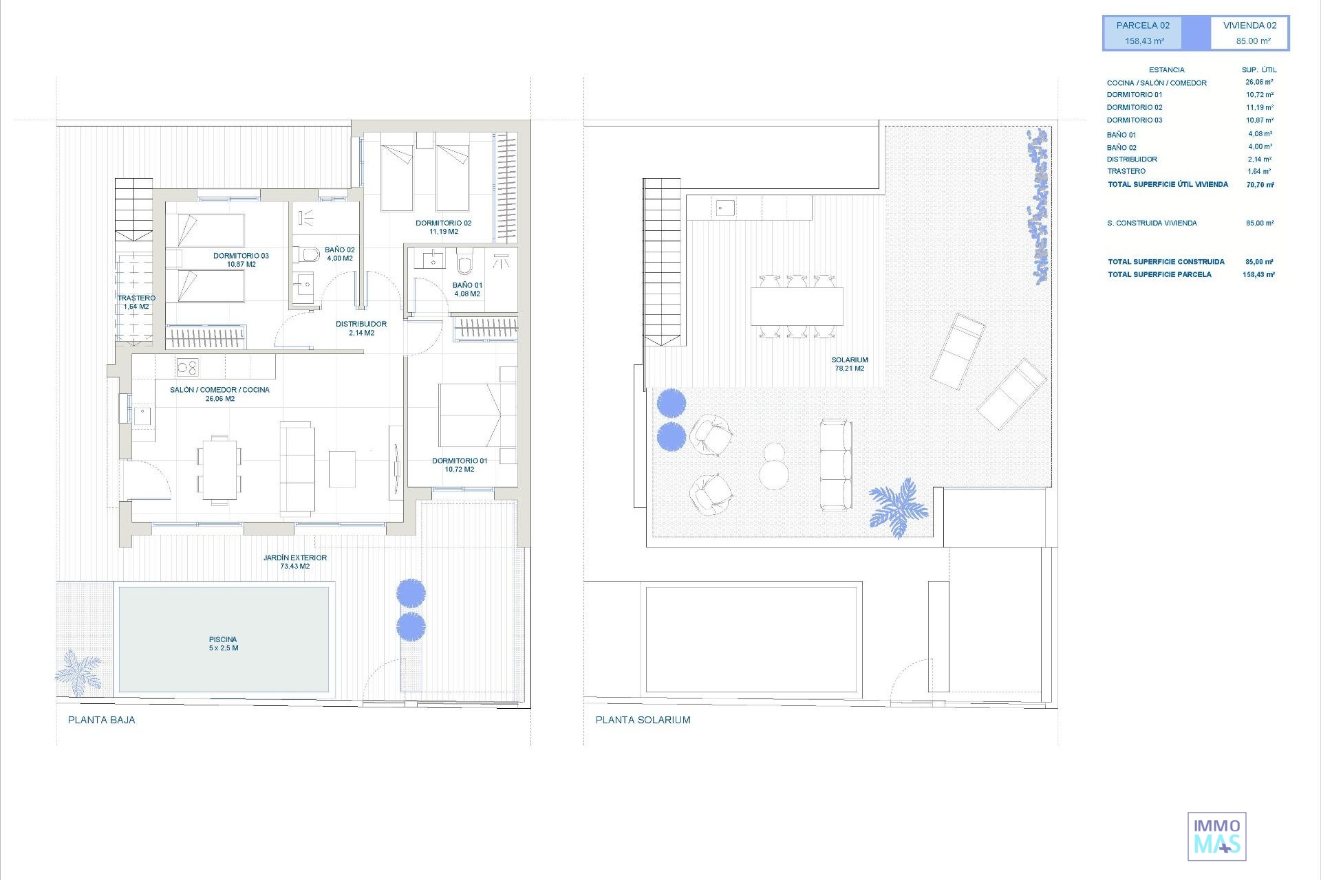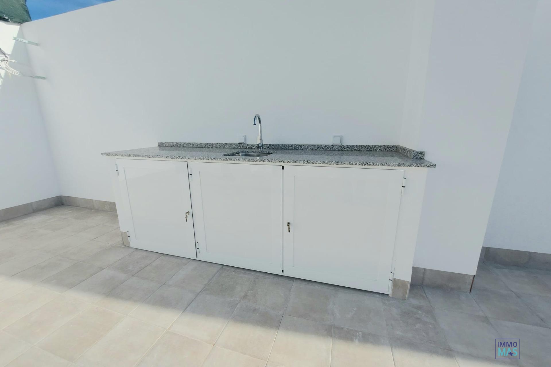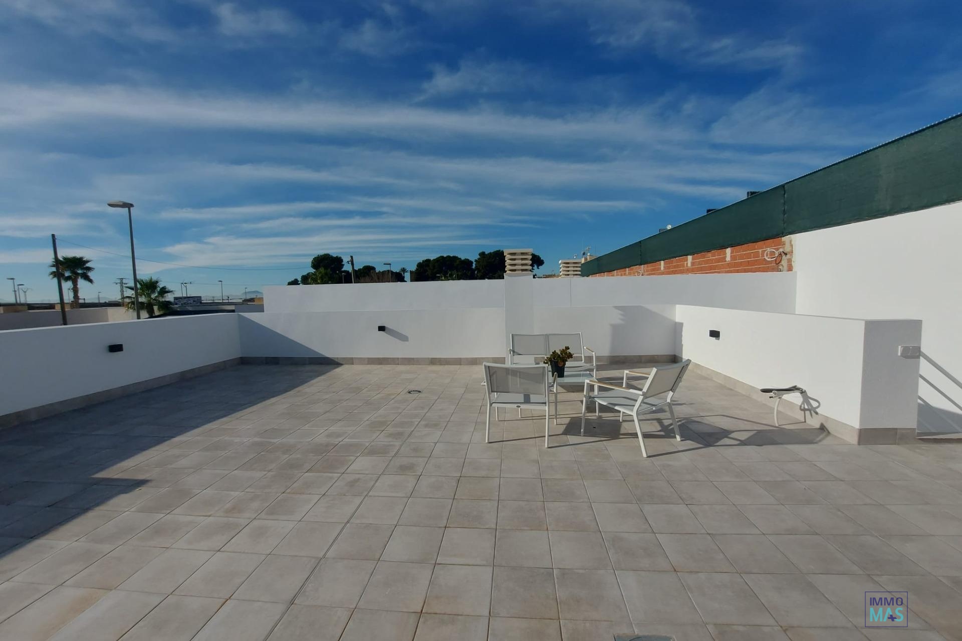 NEW BUILD SEMI-DETACHED VILLAS IN ROLDAN New Build semi-detached villas in Roldan, Torre Pacheco. Modern villas build over one floor, has 2 or 3 bedrooms, 2 bathrooms, open plan kitchen with the lounge area, fitted wardrobes, private solarium. All villas has private garden with pool and parking space. Roldan itself is a traditional town with all the local amenities you will need including Supermarkets, Restaurants, Bars, Health Clinic, Pharmacy, Police Station, Petrol Station, Mechanics, Dentists, Doctors and more. The nearby golf resorts of La Torre, & Terrazas are easily accessible, Corvera Airport is 15 minutes away & the beaches of the Mar Menor just 20 minutes drive. 421