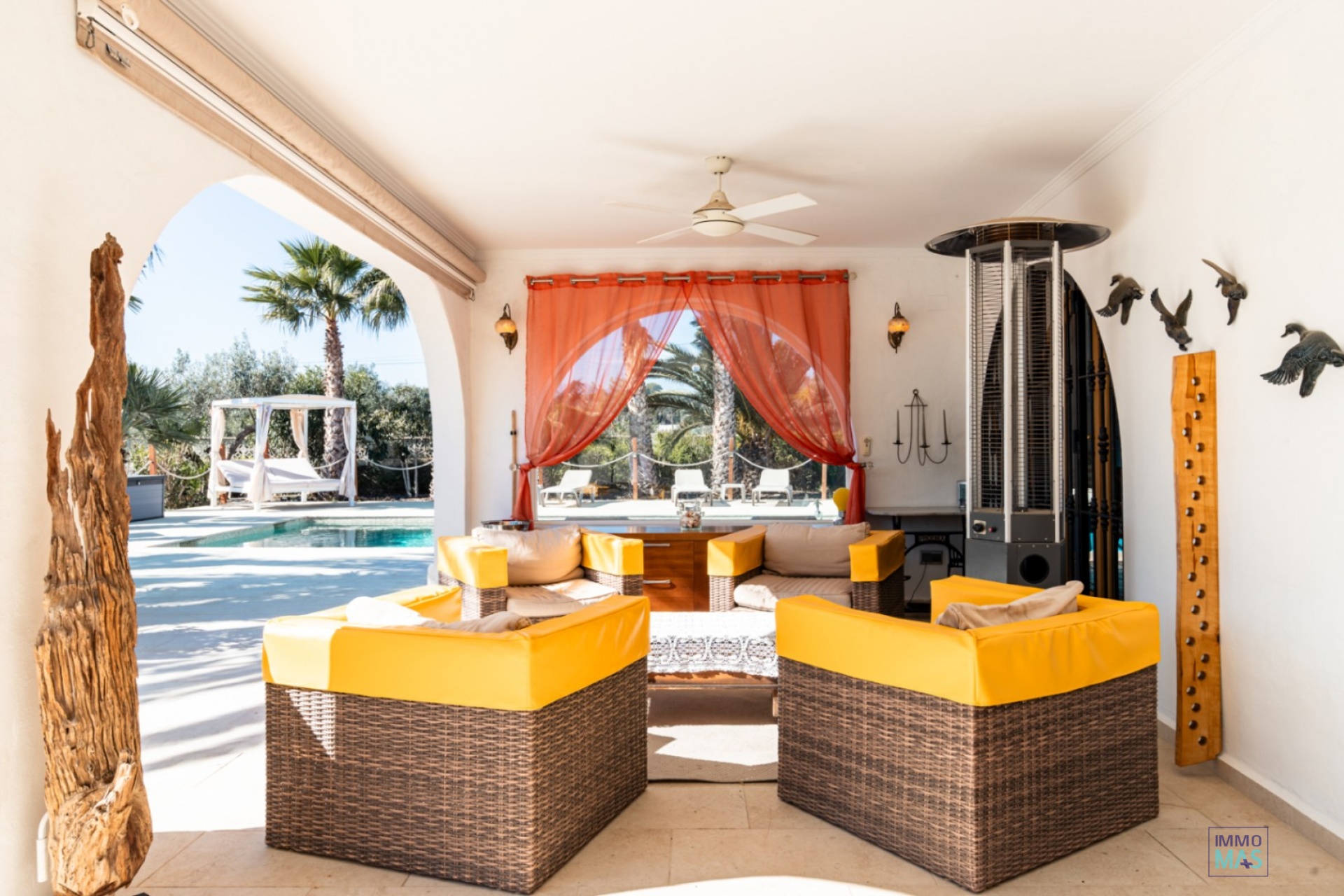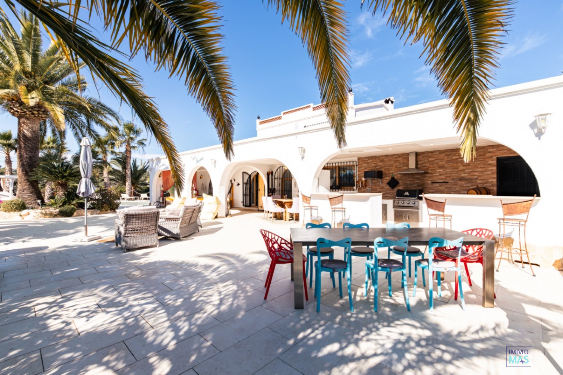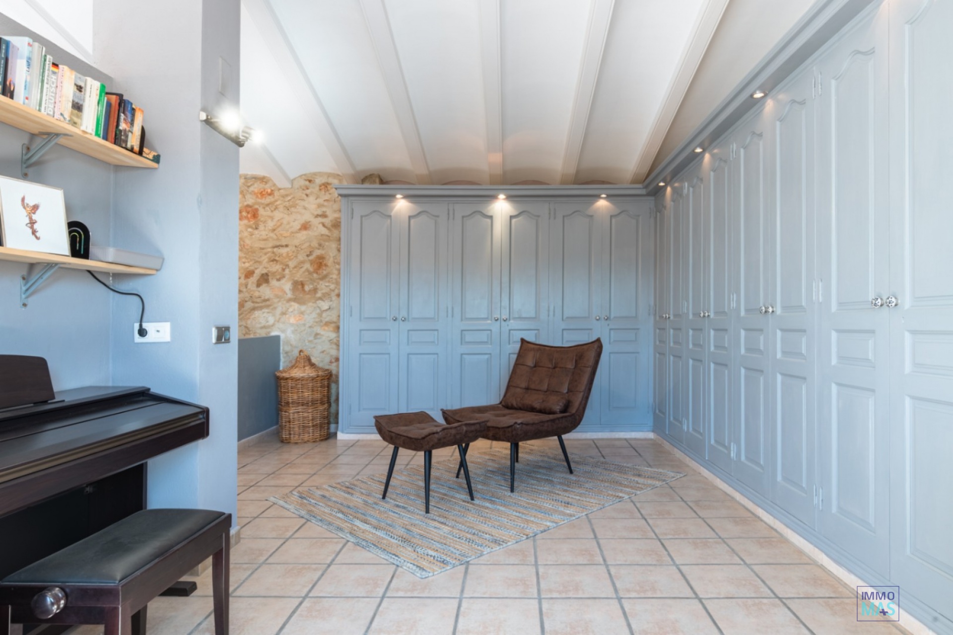 Located just minutes from the city center and the coast, this immaculate renovated estate represents the perfect balance between the charm of the Spanish countryside and the functionality of a high-quality modern refurbishment. Access to the property, whether via its pedestrian entrance or through its electric gates, leads to a spacious parking area with covered capacity for four vehicles, anticipating the spaciousness and order that define the entire plot. The residence is intelligently distributed over three levels, where natural stone and original architectural details coexist with a comprehensive technical renovation. The sleeping area comprises three main bedrooms and an additional intermediate room, currently optimized as an office, which grants access to a generously sized bathroom equipped with both shower and bathtub. Furthermore, the two secondary bedrooms benefit from the convenience of their own private bathrooms with showers, complemented by a separate guest toilet for added functionality. The heart of the home consists of a spacious living room and dining room, specifically designed for entertaining and socializing, equipped with both a gas fireplace and a wood-burning stove. The kitchen, featuring high-end appliances, is supported by a private wine cellar and an independent laundry room. In terms of sustainability, the estate stands out with its installation of 15 solar panels that supply power to the entire home, reinforced by central heating via underfloor heating and cold/heat air conditioning. The outdoor lifestyle is one of the greatest assets of this property. A large terrace hosts a fully equipped outdoor kitchen with a Broil King gas barbecue and a traditional wood-fired oven. The meticulously maintained garden surrounds a 9.5 m x 5 m swimming pool that features its own cover, ideal for extending the bathing season. The outdoor facilities are completed with ambient lighting, an irrigation system, 15 types of fruit trees in production, a private jacuzzi, and a pétanque court. In addition, the plot includes a separate building and a garden shed that offer valuable versatile storage space. With double-glazing and mosquito nets on all windows, this estate is an exceptional opportunity for those seeking a ready-to-move-in residence, where energy efficiency and privacy are just a step away from all services.