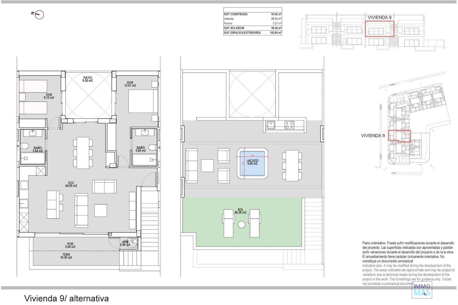 New Build Bungalows for Sale in Pilar de la Horadada 3 km from Beach Boutique Residential Development in Pilar de la Horadada Discover this exclusive new build residential complex of modern bungalows located in Pilar de la Horadada, the southernmost town of the Costa Blanca. This boutique project consists of only 14 carefully designed homes with 2 or 3 bedrooms and 2 bathrooms, offering an ideal combination of comfort, style and Mediterranean lifestyle. The development is situated in a quiet residential area within walking distance of the town center, allowing residents to enjoy easy access to shops, restaurants, supermarkets and essential services. Pilar de la Horadada is known for its welcoming atmosphere, traditional Spanish charm and lively main street filled with cafes, boutiques and charming squares. Modern Bungalows with Private Outdoor Spaces The homes have been designed to offer bright interiors and functional layouts, perfect for both permanent living and holiday use. Ground floor bungalows feature a private garden and private swimming pool, creating the perfect setting to enjoy outdoor living, sunbathing or entertaining family and friends. Top floor bungalows include a spacious terrace and a private rooftop solarium. The solarium comes with a summer kitchen and offers the option to add a private pool or jacuzzi at an extra cost, making it an ideal space to relax while enjoying the warm Mediterranean climate and open views. Each property includes a private parking space within the residential complex for added convenience. Quality Construction and Modern Features These new build homes are built with quality materials and modern installations designed to ensure comfort and energy efficiency throughout the year. Aluminum exterior carpentry with thermal break Fully fitted kitchens with included appliances Bathrooms equipped with mirrors and shower screens Interior and exterior LED lighting Hot water system with energy efficient aerothermal technology Pre installation for ducted air conditioning The combination of modern design and practical features makes these homes an excellent option for buyers looking for a contemporary property on the Costa Blanca. Excellent Location Close to Beaches and Golf Pilar de la Horadada enjoys a strategic location close to some of the best beaches and golf courses in the region. Torre de la Horadada beach 3 km Mil Palmeras beach 3 km Lo Romero Golf 6 km Region de Murcia International Airport 45 km Alicante Elche Airport 75 km The area also offers excellent road connections to nearby coastal towns, marinas and leisure facilities, making it a perfect base to explore the Costa Blanca and Costa Calida. Find Your New Home on the Costa Blanca If you are looking for a modern new build bungalow near the beach with excellent amenities and a fantastic location, this residential development in Pilar de la Horadada is an outstanding opportunity. Contact us today for more information or to schedule a visit. 421