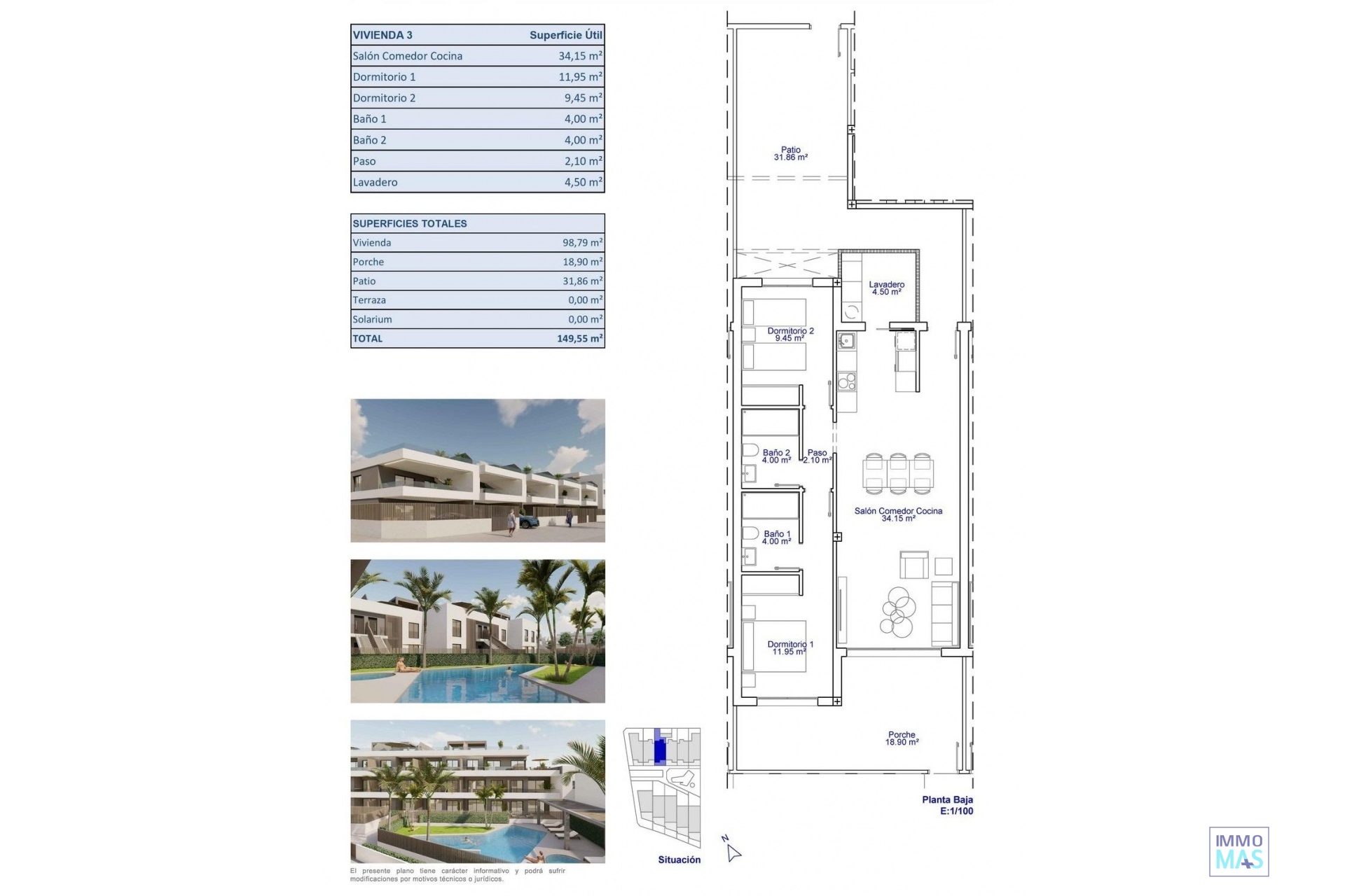 New Build Apartments and Bungalows for Sale in Pilar de la Horadada Near the Beach Exclusive Residential Development on the Southern Costa Blanca Discover this modern new build residential complex located in Pilar de la Horadada, the southernmost town on the Costa Blanca. This boutique development offers a selection of contemporary apartments and bungalows designed to combine comfort, functionality and Mediterranean lifestyle. The project consists of only 26 carefully designed homes with 2 or 3 bedrooms and 2 bathrooms, making it an ideal option for both permanent residence and holiday living. The complex is located in a quiet residential area within walking distance of the town center, where residents can enjoy restaurants, cafes, supermarkets, local shops and all essential services. Pilar de la Horadada is a charming Spanish town known for its welcoming atmosphere, lively main street and beautiful plazas. With excellent connections to nearby coastal areas and golf resorts, it is a popular destination for international buyers seeking sunshine and quality of life. Apartments and Bungalows with Private Outdoor Spaces The development offers two different property types to suit various lifestyles. The complex includes 16 modern apartments. Buyers can choose between ground floor units with private gardens, middle floor apartments with spacious terraces or penthouses with private terraces and rooftop solariums. There are also 10 bungalows available. Ground floor bungalows feature private gardens and parking within the plot, while top floor bungalows offer terraces and private solariums. There are optional parkings and storages at underground for an extra cost. All homes have been designed with bright interiors, open layouts and comfortable living areas that extend naturally to the outdoor spaces. Quality Construction and Modern Features The homes are built with high quality materials and modern systems to ensure comfort and energy efficiency throughout the year. Furnished kitchens Fully equipped bathrooms with shower screens and underfloor heating Energy efficient aerothermal hot water system Pre installation for ducted air conditioning Residents also benefit from a communal swimming pool surrounded by landscaped gardens and sunbathing areas, creating a relaxing environment to enjoy the Mediterranean climate. Excellent Location Close to Beaches and Golf The development enjoys a strategic location close to some of the best beaches and golf courses in the region. Torre de la Horadada beach 3 km Mil Palmeras beach 3 km Lo Romero Golf 6 km Region de Murcia International Airport 45 km Alicante Elche Airport 75 km The area also offers excellent road connections to nearby coastal towns, marinas and leisure facilities along both the Costa Blanca and Costa Calida. Find Your New Home in Pilar de la Horadada This attractive new build residential complex offers modern homes, quality finishes and a fantastic location close to the beach. Contact us today for more information or to arrange a visit and secure your new property on the Costa Blanca. 421