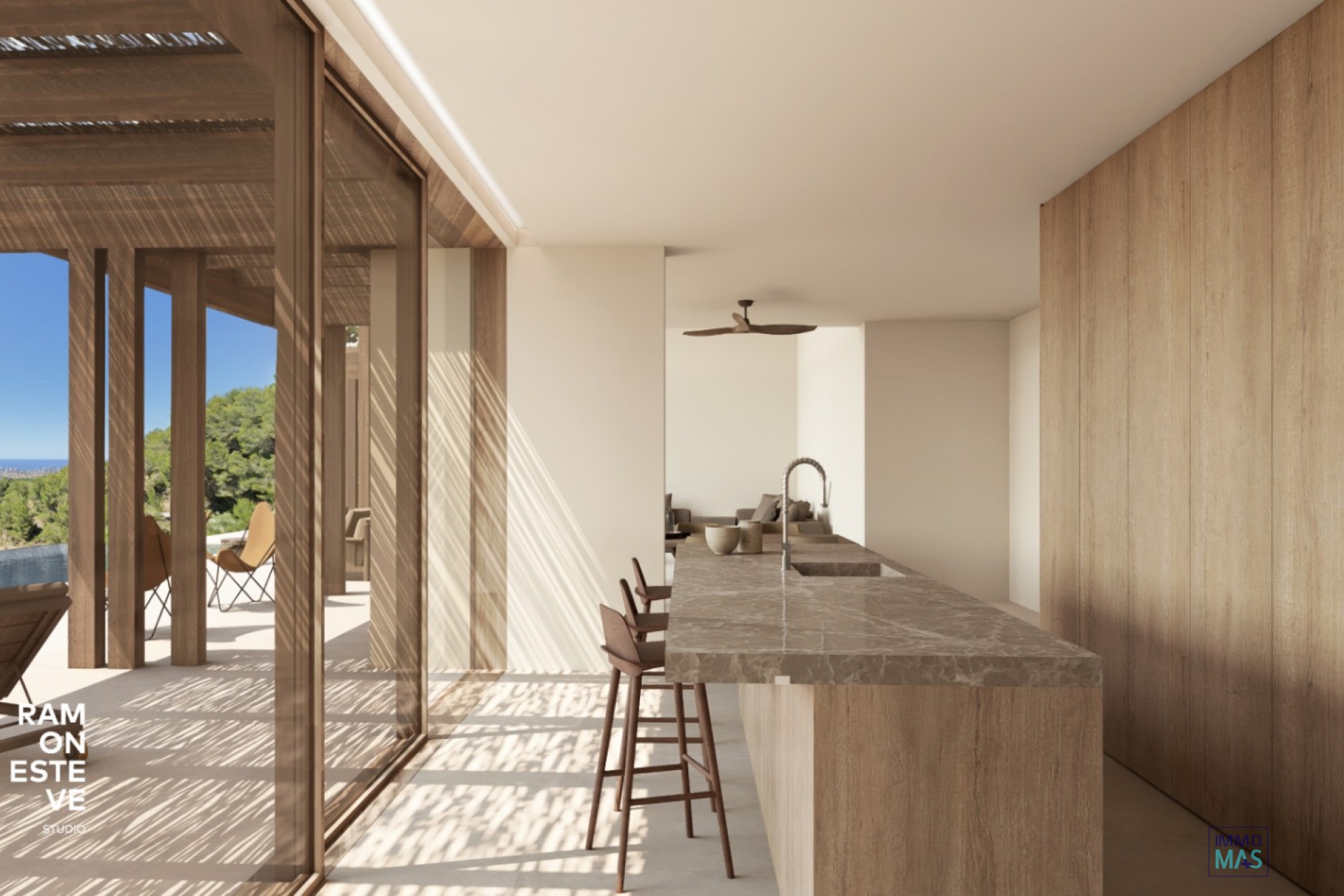 Discover this spectacular designer villa in the prestigious Racó de Galeno, Benissa. This cozy villa is spread over 4 floors, all connected by an internal staircase and an elevator, offering maximum comfort and elegance. In the basement, you will find a large garage with easy access from the street and a hall that leads to the internal staircase and the elevator, providing access to all floors. The ground floor has a huge multipurpose area with large windows that allow in natural light. Here you will also find a bedroom with an en-suite bathroom, a guest toilet and a spacious living-dining room with a fully equipped kitchen. The living room has additional ceiling height, allowing the beautiful Mediterranean light to flood the house. On the first floor are two full-size bedrooms with en-suite bathrooms and a study, offering privacy and comfort. The villa has been designed to make the most of the area s wonderful climate, with large protected terraces with porches, ideal for enjoying the Mediterranean lifestyle. In addition, it has additional features that make it even more attractive and sustainable: installation of photovoltaic solar panels, ducted air conditioning system, underfloor heating and domestic hot water using an electric heat pump (aerothermal), ventilation system with exchange air-air heat, connection to the public sewage network and water softener for domestic use. Don t miss the opportunity to live in this dream villa, designed to offer luxury, comfort and sustainability in a privileged environment. For more information or to arrange a visit, do not hesitate to contact us.