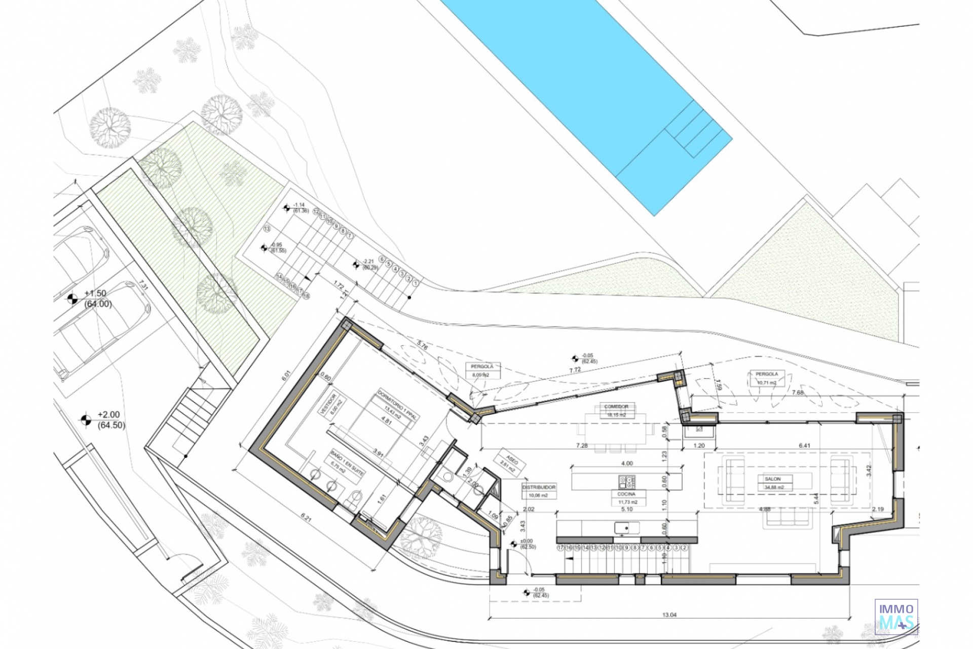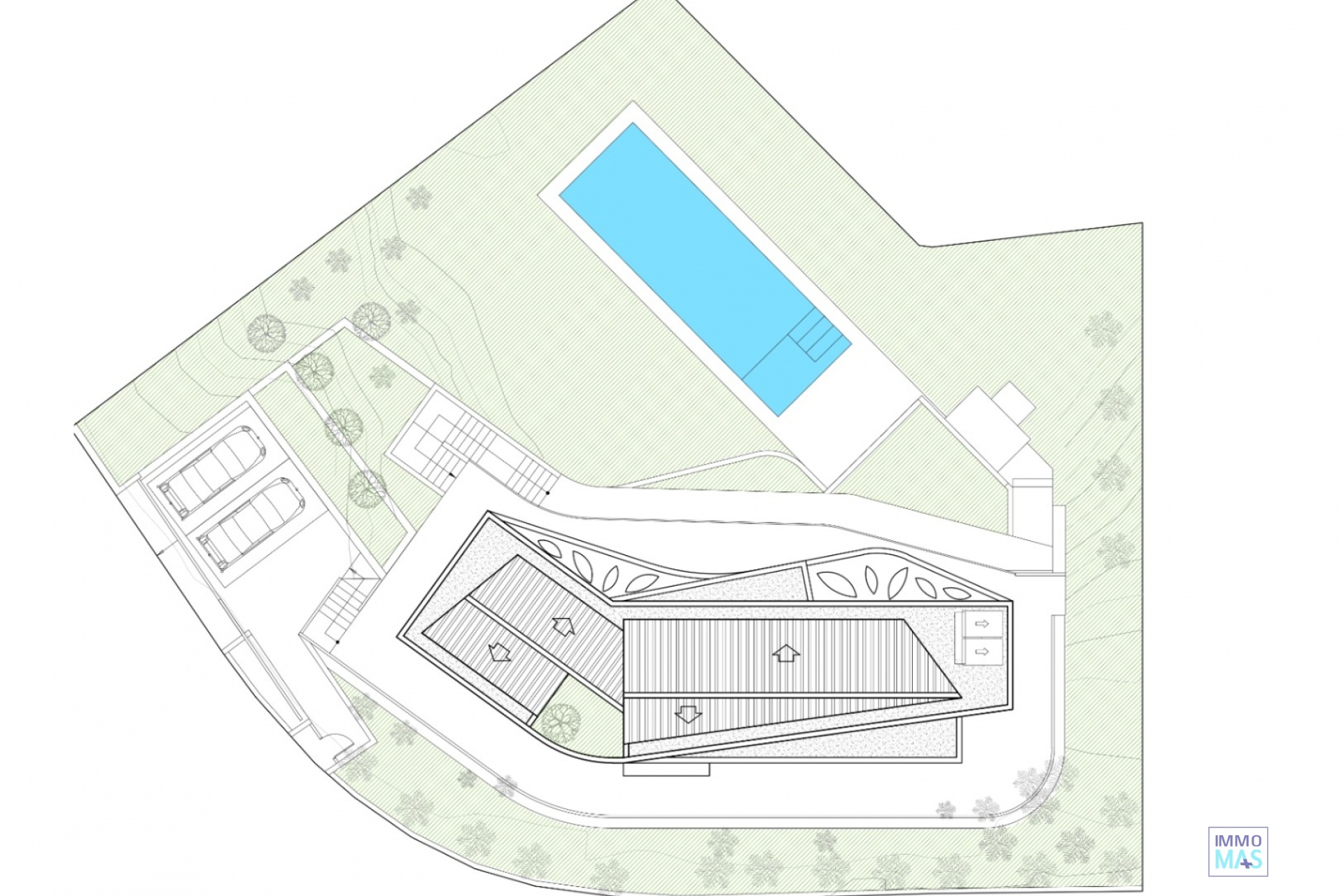 Located in a coveted residential area of Jávea, this spectacular contemporary-style villa is currently under construction and will be ready for occupancy in 2026. With an architectural design that combines clean lines and elegant curves with high-quality materials, this property represents a perfect fusion of modernity, comfort, and exclusivity. Future owners will have the unique opportunity to customize several key finishes to their liking, thus creating a truly bespoke home. From its elevated position, the villa offers stunning open views that extend from the green hills to the Mediterranean Sea. On the main floor, there is a spacious and bright living-dining room with an integrated kitchen, a guest toilet, and a spacious master suite with a private bathroom. The lower floor, with direct access to the garden, houses two additional bedrooms, a full bathroom, a laundry room, and a flexible space that can be converted into a fourth bedroom with an en-suite bathroom. The outdoor areas have been designed to fully enjoy the Mediterranean climate: a large covered terrace with a barbecue area, a designer pool with wide steps and nighttime lighting, and a terraced garden adorned with native flora and natural stone walls. The entire plot is completely fenced for greater privacy and security. As for amenities, the villa will feature a fully equipped high-end kitchen, a radiant floor heating system powered by a heat pump with solar support, air conditioning in all rooms, a charging point for electric vehicles, smart lighting, an alarm system, and video surveillance. The property is accessed via an elegant double garage with an electric gate or directly from the street through the main entrance. Situated just 5 minutes from Arenal beach and 10 minutes from a prestigious international school, this villa combines privacy, accessibility, and lifestyle. With easy connections to Alicante (1 hour) and Valencia (1 hour and 20 minutes), it is an ideal option both as a permanent residence and as a luxury investment. An exceptional opportunity to acquire a modern, sustainable, and fully customizable villa in one of the most exclusive locations on the Costa Blanca.