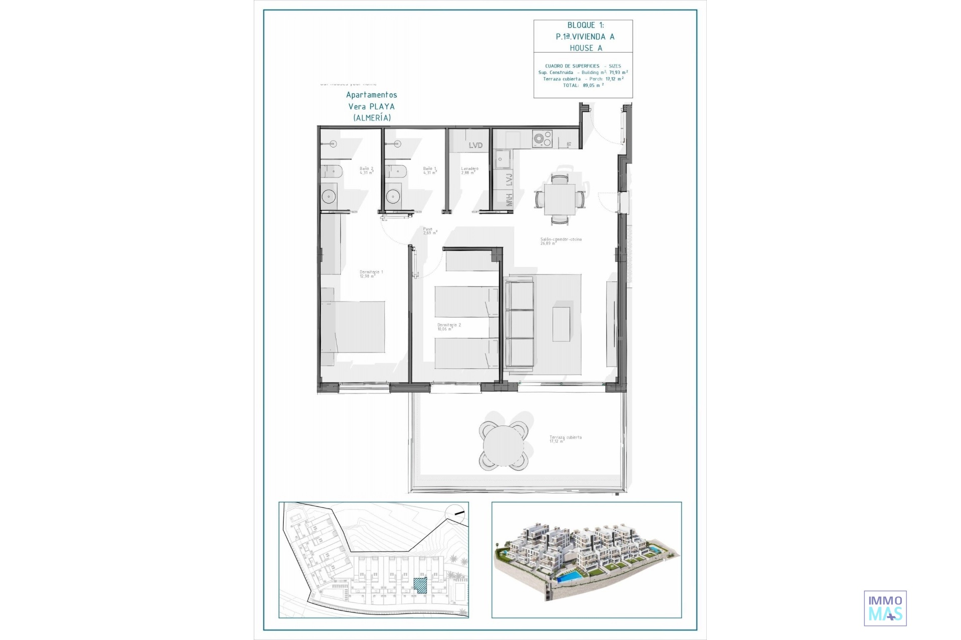 New Build Apartments in Vera Playa, Almería – Modern Homes Near the Sea Contemporary Living in Pueblo Salinas, Just 2 km from the Beach Introducing a stunning new residential development located in the sought-after area of Vera Playa, within the exclusive Pueblo Salinas urbanization. This modern complex offers a privileged lifestyle just 2 km from the beaches of Vera (Almería), boasting spectacular sea views and a peaceful Mediterranean environment ideal for year-round living or holiday enjoyment. Elegant Homes with Modern Comfort and Style This new development consists of 60 high-quality apartments distributed across 5 low-density blocks, with only two properties per floor. Choose between 2 or 3-bedroom layouts designed with functionality, comfort, and style in mind. Options include: Ground floors with private gardens Middle-floor units with spacious terraces Top-floor penthouses with large solariums including summer kitchen and pergola with solar panels. All properties feature: Open-plan fully equipped kitchens with integrated fridge, dishwasher, induction hob, oven, microwave, and extractor fan Bright living spaces and LED lighting throughout (except bedrooms) Motorized aluminum shutters in bedrooms Bathrooms with modern finishes, including towel heaters, shower trays with glass screens and built-in furniture Pre-installation of ducted air conditioning Aerothermal system for efficient hot water production Security entrance door Exceptional Community Amenities Residents will enjoy access to a wide range of amenities designed to enhance comfort and leisure, including: Two outdoor swimming pools perfect for the summer months One indoor heated pool for year-round use Private parking space and storage unit included with every property Pre-installation for electric vehicle charging at parking areas Prime Location with Excellent Connections Vera Playa is a popular coastal destination known for its wide sandy beaches and relaxed lifestyle. The development’s location provides easy access to essential services and attractions: Beach: 2 km Desert Springs Golf Resort: 8 km Vera town center: 5 km Garrucha marina and restaurants: 6 km Parque Comercial Mojácar: 10 km Almería Airport: 85 km (1 hour by car) Make Vera Playa Your New Home Whether you're looking for a permanent residence, a holiday retreat, or a smart investment, these new build apartments offer unmatched value in one of the most desirable areas of the Costa de Almería. Contact us today for more information and to schedule your visit. 421