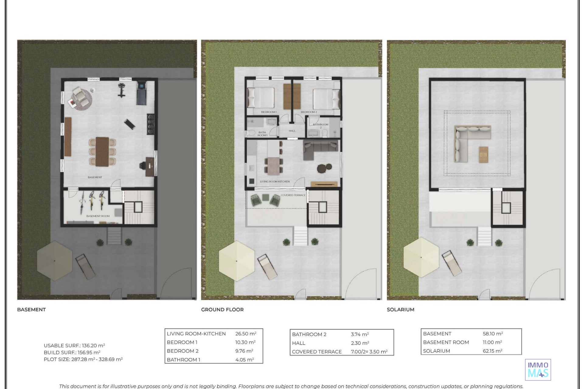 New Build Villas in Camposol Golf (Mazarron-Murcia) with Private Solarium and Basement Exclusive Residential Villas at Camposol Golf Discover this private residential complex of 69 independent villas located in a plot frontline to Camposol Golf in Mazarron, Murcia. Designed around a large central green oasis with a communal swimming pool and landscaped gardens, this development offers a peaceful and secure environment ideal for enjoying the Mediterranean lifestyle. The location combines tranquility with convenience, as the nearby village of El Saladillo provides daily services, shops and local amenities within a short distance. The beautiful beaches of Puerto de Mazarron are just 14 km away, making this an excellent option for both permanent living and holiday homes. Modern Single Level Villas with Flexible Layouts The development offers a selection of modern villas built on one level, available in two or three bedroom configurations. All homes include two bathrooms, one of them en suite, designed with functionality and comfort in mind. Each villa is set on a private plot starting from 300 m2, providing outdoor space for relaxation and entertainment. The properties also feature a private solarium, offering additional outdoor living space with open views of the surrounding golf course and landscape. Basement and Customization Potential A key feature of these villas is the inclusion of a spacious basement, allowing owners to customize the space according to their needs. This area can be adapted into a gym, storage room, home cinema or additional living space, offering great flexibility and added value. The villas are designed with interior stairs connecting all levels, ensuring easy access between the basement, main living area and rooftop solarium. Quality Features and Comfortable Living These new build homes are delivered with high quality finishes and modern features. The kitchens come fully furnished and equipped with appliances, while the bathrooms are completed with shower screens and fittings. Additional features include pre installation for air conditioning, built in wardrobes, electric shutters and a full LED lighting package, ensuring comfort and convenience from day one. Prime Location in Mazarron Near Golf and Coast Camposol is a well established residential area known for its golf course, relaxed atmosphere and international community. Mazarron offers a wide range of services, restaurants and leisure options, while the nearby coast is famous for its sandy beaches and crystal clear waters. Key distances include Camposol Golf on your doorstep, El Saladillo village 2 km, Puerto de Mazarron beaches 14 km, Mazarron town center 10 km, Murcia Corvera Airport 35 km and Cartagena city 40 km. Ideal Investment and Lifestyle Opportunity in Murcia This development offers an excellent opportunity to own a modern villa in a golf front location with great potential for customization and strong rental appeal. Contact us today to receive more information or to arrange a viewing and secure your new villa in Camposol-Mazarron. 421