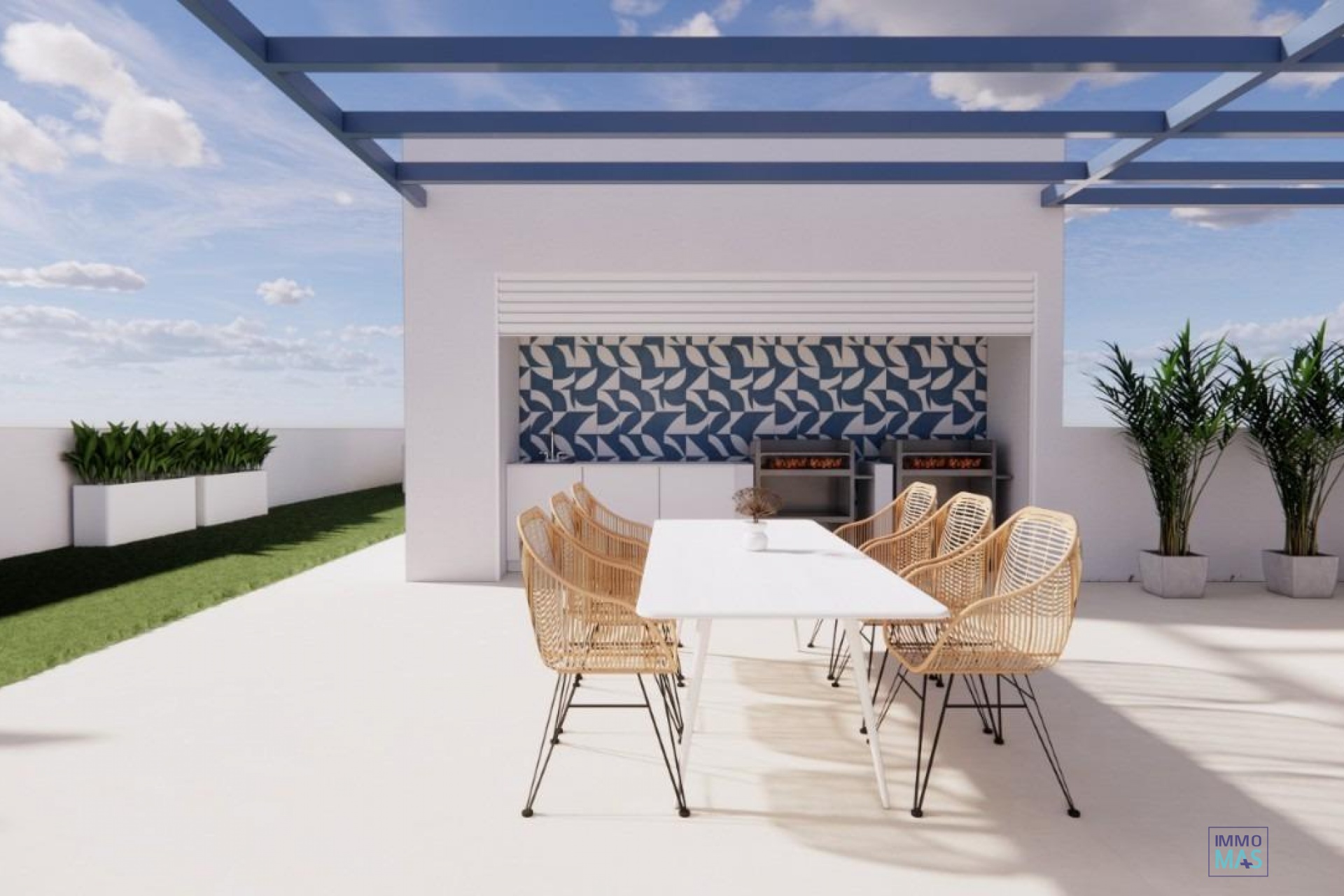 New Mediterranean apartments just 140 metres from the beach in Torre de la Horadada Exclusive seaside living on the Costa Blanca Discover this new residential project in Torre de la Horadada, ideally located just 140 metres from the sea, between El Conde and El Puerto beaches and next to the marina. This exclusive development comprises just 8 modern Mediterranean-style apartments, offering a unique combination of coastal charm and contemporary comfort in one of the most sought-after locations on the southern Costa Blanca. Located in a quiet and picturesque coastal village, these homes are surrounded by essential amenities such as supermarkets, restaurants, cafés and shops, all within walking distance. The area is known for its relaxed atmosphere, crystal clear waters and family-friendly environment. Elegant design and quality finishes Each apartment has 1, 2 or 3 bedrooms and 1 or 2 bathrooms, carefully designed to maximise space and natural light. The interiors feature: Security entrance door for peace of mind Fitted wardrobes in the bedrooms, fully lined and finished Modern bathrooms equipped with furniture, mirrors and shower screens Pre-installation of ducted air conditioning for year-round comfort These high-quality finishes create bright and functional spaces, perfect for both permanent residence and holiday use. Roof-top solarium with swimming pool and chill-out area The highlight of this development is the communal roof-top solarium, which is accessible by stairs or lift. Residents can enjoy a roof-top swimming pool, an outdoor kitchen area, barbecue and pergola-covered dining areas, and a sunbathing area with artificial grass. This exclusive rooftop oasis is the perfect place to relax under the Spanish sun. Prime location and excellent connections Torre de la Horadada is known for its stunning coastline, marina and lively promenade. The development offers easy access to nearby destinations: Beaches: 100 m Lo Romero golf course: 7 km San Pedro del Pinatar: 5 km Murcia-Corvera Airport: 40 minutes (55 km) Alicante Airport: 55 minutes (75 km) The beach house of your dreams awaits With its unbeatable location, elegant design and exceptional community amenities, this new boutique residential project in Torre de la Horadada is the perfect opportunity to enjoy the Mediterranean lifestyle. Contact us today to arrange a viewing and secure your new home just steps from the sea on the Costa Blanca. 421