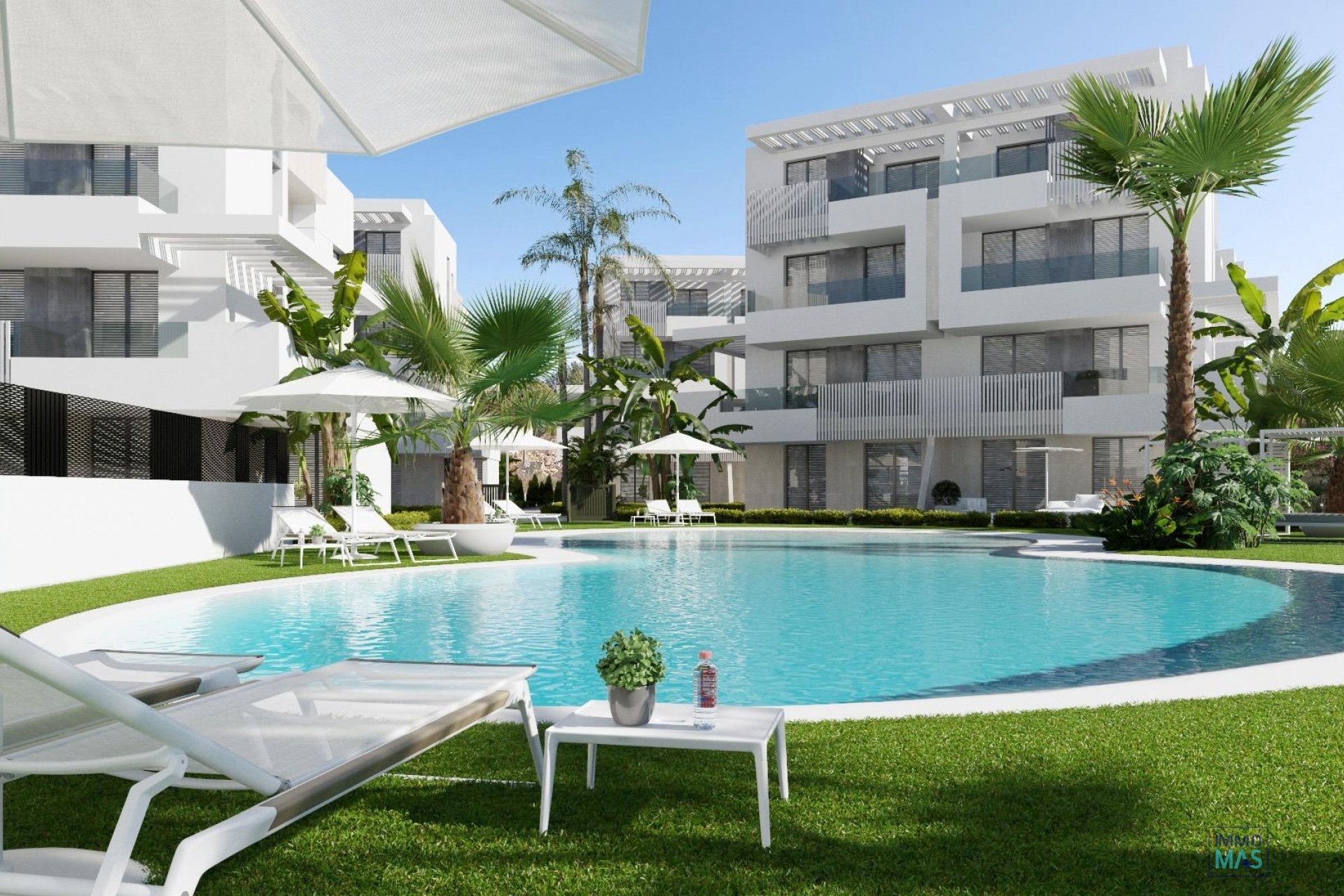 NEW BUILD APARTMENTS IN PRIVATE GATED RESORT IN PROVINCE OF MURCIA New Build residential complex of 6 blocks, a total of 42 apartments. Beautiful apartments have 3 and 2 bedrooms and 2 bathrooms with views of the large lake and green areas of this large luxury resort. Ground floor apartments with private garden, top floor apartments with private solarium. Complex has a communal pool and all the apartments have a parking pace and a storage room. Located in a private gated resort, with a main access entrance and 24 hours security. The resort is designed around an impressive 126.000 m2 green area. It comprises walking and cycling paths, sport facilities, paddle and tennis courts, a mini-golf course, gardens, dog parks, leisure areas, clubhouse…. Also in the central area is the jewel of the resort, a crystal-clear artificial lake of almost 17.000m2 of water surface, surrounded by white sandy beaches and palm trees, bringing a piece of the Caribbean to the Murcia Region. There are 2 islands in the lake, one of them has its own bar, there are also “beach Chiringuitos” spread around the lake. The resort is strategically located less than 4 km from the beach and the town of Los Alcázares, where you can practice various water sports, surrounded by several golf courses and the city of Cartagena less than 15 minutes by car and 22 km from Murcia airport, therefore having a wide cultural, gastronomic and sports offer within reach. 421
