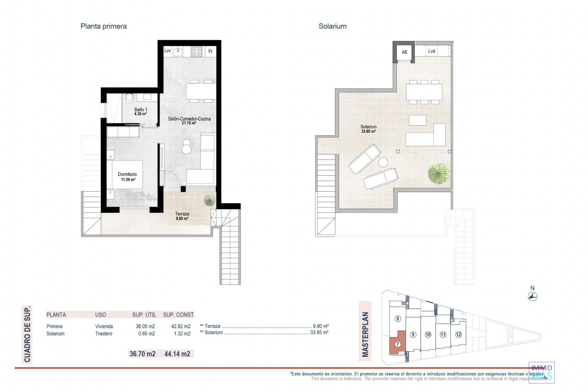 Modern Apartments with comunal Pool Near the Beach in San Pedro del Pinatar Exclusive New Build Apartments on the Costa Calida Discover this boutique development of 12 modern apartments designed to offer comfort, functionality and quality of life in one of the most attractive areas of the Costa Calida. Located close to Lo Pagan in San Pedro del Pinatar, this residential complex combines a residential environment with easy access to the coast and all essential services. The area is well known for its relaxed Mediterranean lifestyle, natural beaches and famous mud baths. With shops, restaurants, supermarkets and leisure facilities nearby, this location is ideal for both permanent living and holiday stays. Prime Location Close to Beaches and Promenade The development is situated just 3 km from the beaches of La Torre and the popular Lo Pagan promenade, where you can enjoy seaside walks, beach bars and water sports activities. The Mar Menor offers calm and warm waters, perfect for families and outdoor enthusiasts. Contemporary Design with Flexible Layouts The project offers 1 and 2 bedroom apartments in different configurations to suit various lifestyles. Ground floor properties feature large private terraces, parking within the plot and direct access to the communal pool. Top floor apartments include private rooftop solariums, ideal for enjoying the sun and outdoor living. All homes are designed with open plan living spaces, combining kitchen, dining and lounge areas with direct access to terraces. Bedrooms include built in wardrobes, and the master bedroom benefits from an en suite bathroom. High Quality Finishes and Energy Efficiency These apartments are built with a focus on comfort and sustainability. Features include pre installation for ducted air conditioning, pre installation for natural gas central heating and an aerothermal system for hot water. Bathrooms are fully equipped with furniture, mirrors and shower screens, while electric shutters are installed in the living room. Additional technical lighting and ventilation systems ensure a comfortable indoor environment throughout the year. Communal Areas Designed for Relaxation The residential complex offers a beautifully designed communal area with a swimming pool featuring a beach style entrance, perfect for relaxing and cooling off. A dedicated chill out zone with sun loungers and shaded areas creates a welcoming space to socialize and unwind. Additional facilities include outdoor parking with pre installation for electric vehicle charging and a communal bicycle storage area, promoting a sustainable and active lifestyle. Excellent Connectivity and Nearby Amenities This development is ideally located with easy access to key points of interest. Murcia International Airport is approximately 35 km away and Alicante Airport around 75 km. Several golf courses are within 10 to 15 km, and nearby marinas offer excellent nautical facilities. Ideal Investment or Holiday Home Opportunity These apartments offer an excellent opportunity to enjoy modern coastal living in a well connected and sought after area. Contact us today for more information or to arrange a viewing and secure your new apartment near the sea in San Pedro del Pinatar. 421