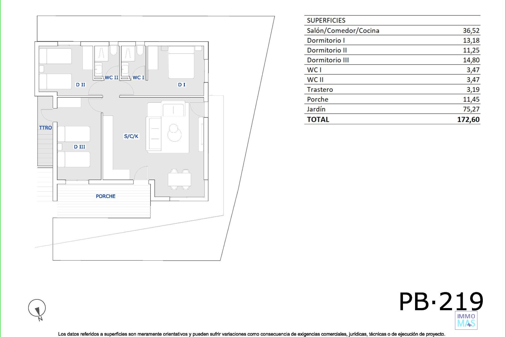 Modern, newly built bungalows in San Miguel de Salinas with 3 communal swimming pools Mediterranean lifestyle in a natural setting Discover this modern development of newly built bungalows on the outskirts of San Miguel de Salinas, a town in the south of the province of Alicante, within walking distance of all amenities. This charming town combines proximity to the sea with the tranquillity of nature, making it an ideal place for both permanent residence and holidays. Housing Options for All Lifestyles The development offers bungalow-style apartments with 2 or 3 bedrooms, available in two layouts: Ground floor with private garden and storage room Upper floor with private sun terrace Each home has been designed with a modern and functional approach, providing comfort, natural light and outdoor spaces to enjoy the Mediterranean climate all year round. Communal Areas for Family Enjoyment This residential complex is fully gated and boasts excellent communal facilities: 3 large communal swimming pools for adults and children Over 3,400 m² of landscaped green spaces These facilities make the development an ideal space for families, couples and retirees seeking a high quality of life in a safe and relaxed environment. Modern Features and Energy Efficiency The homes feature high-quality materials and meticulous finishes: Fully fitted kitchen External joinery with thermal breaks and double glazing Reinforced front door Bathroom furniture included Pre-installation for split-system air conditioning in the living room and bedrooms Excellent Location Near Golf, Beaches and Amenities San Miguel de Salinas is strategically located near tourist and natural areas: Golf courses such as Vistabella, Las Colinas and Campoamor less than 10 km away Beaches of Orihuela Costa 11 km away Lagoons of Torrevieja and La Mata just 8 km away La Zenia Boulevard shopping centre 9 km away Alicante-Elche Airport is 58 km away (35 minutes by car) Murcia International Airport is 63 km away (1 hour by car) Your New Home on the Costa Blanca These properties represent an excellent opportunity for those seeking quality, comfort and a prime location. Contact us now for more information or to book your viewing and take the first step towards your life on the Costa Blanca. 421